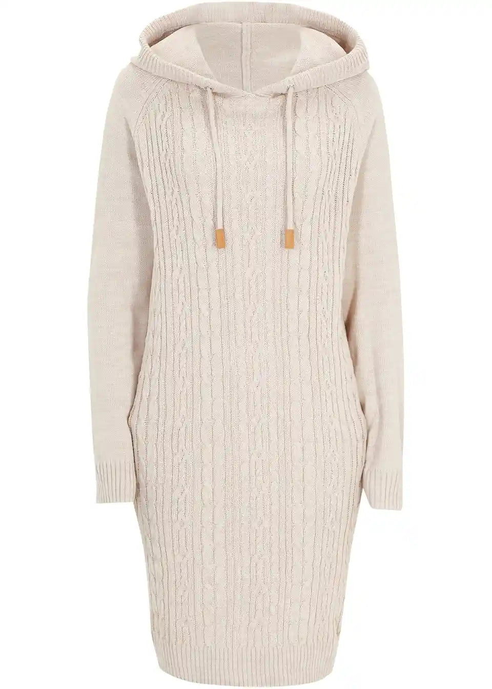 Čudovita pletena obleka s kapuco in pletenim vzorcem