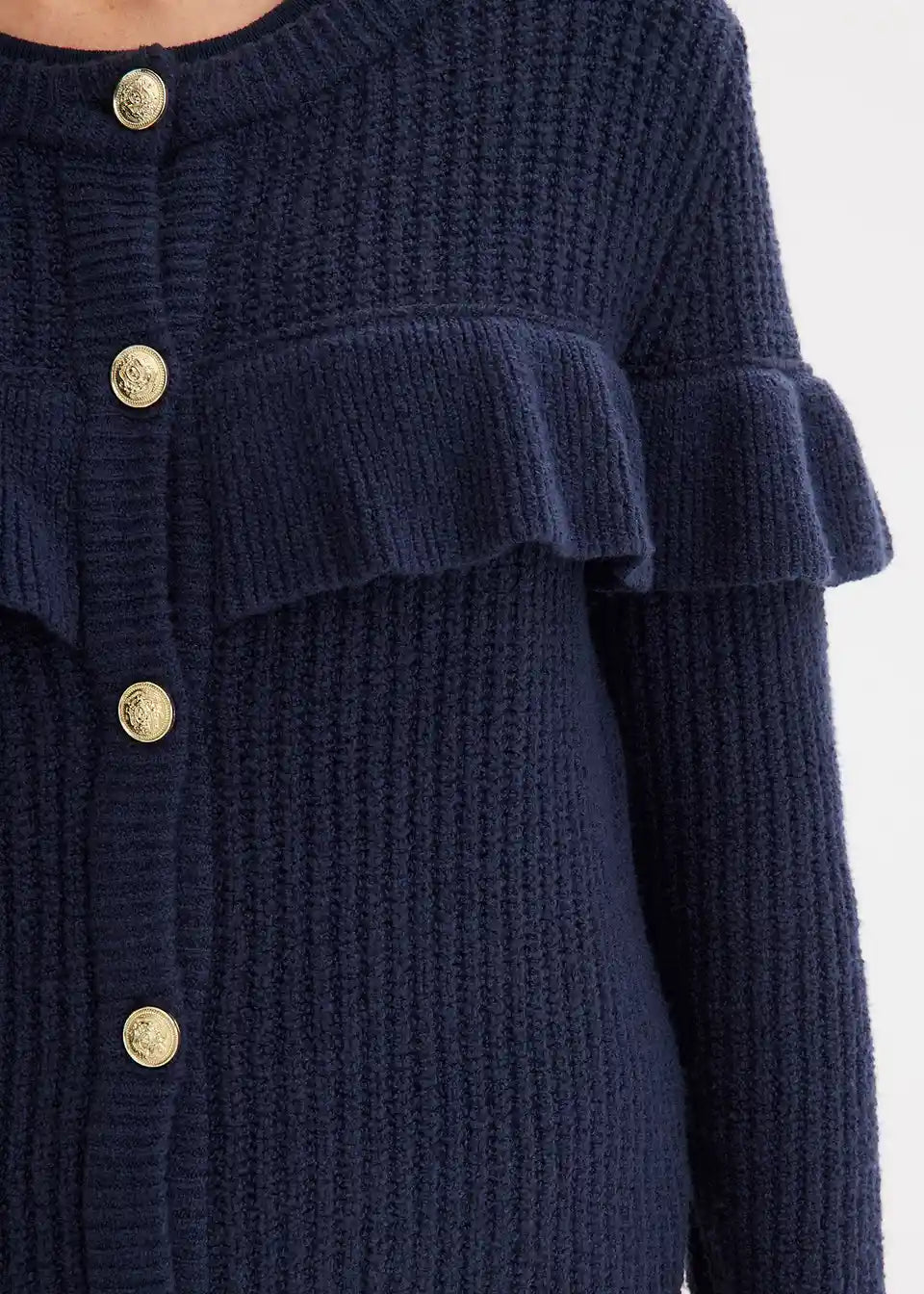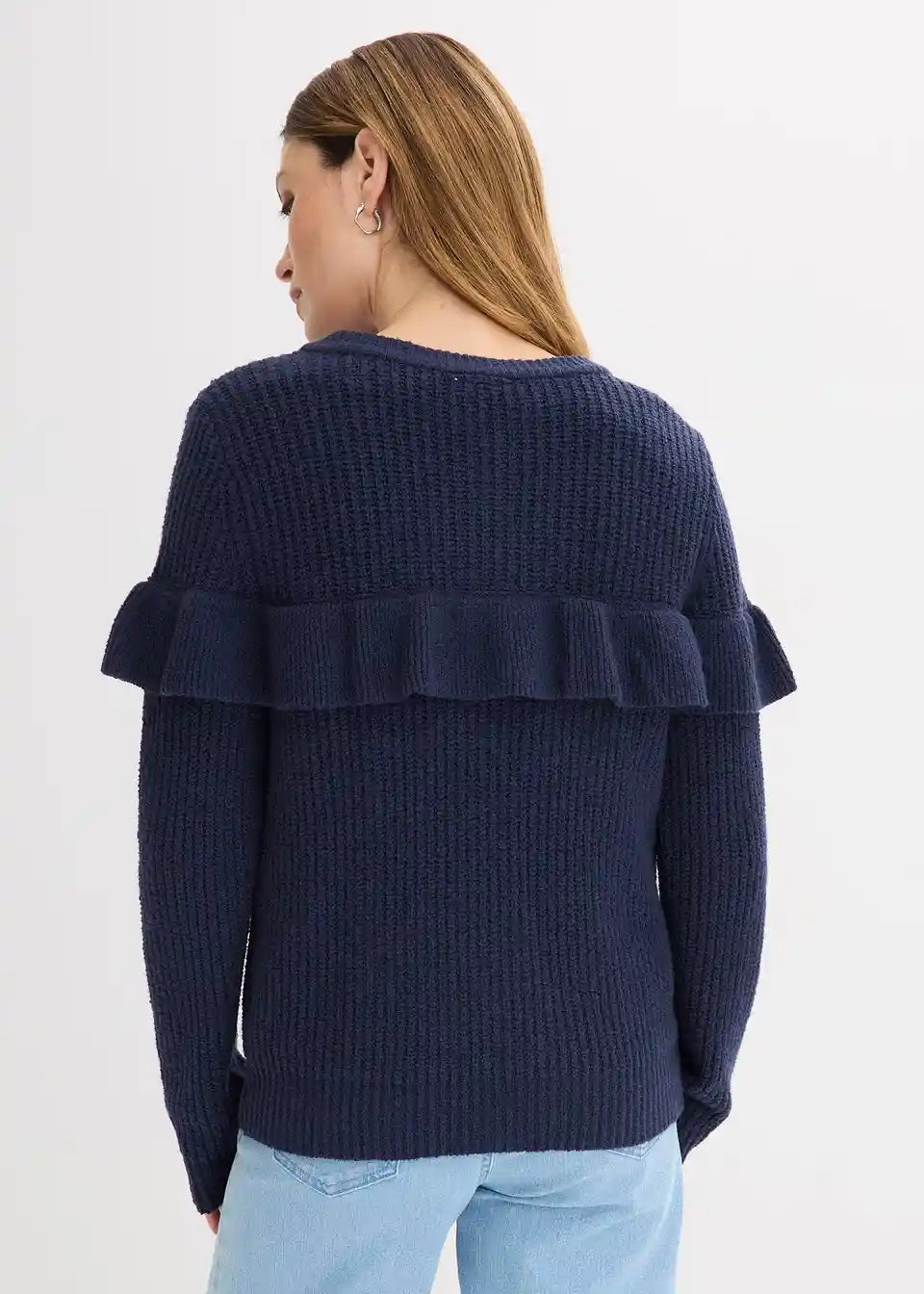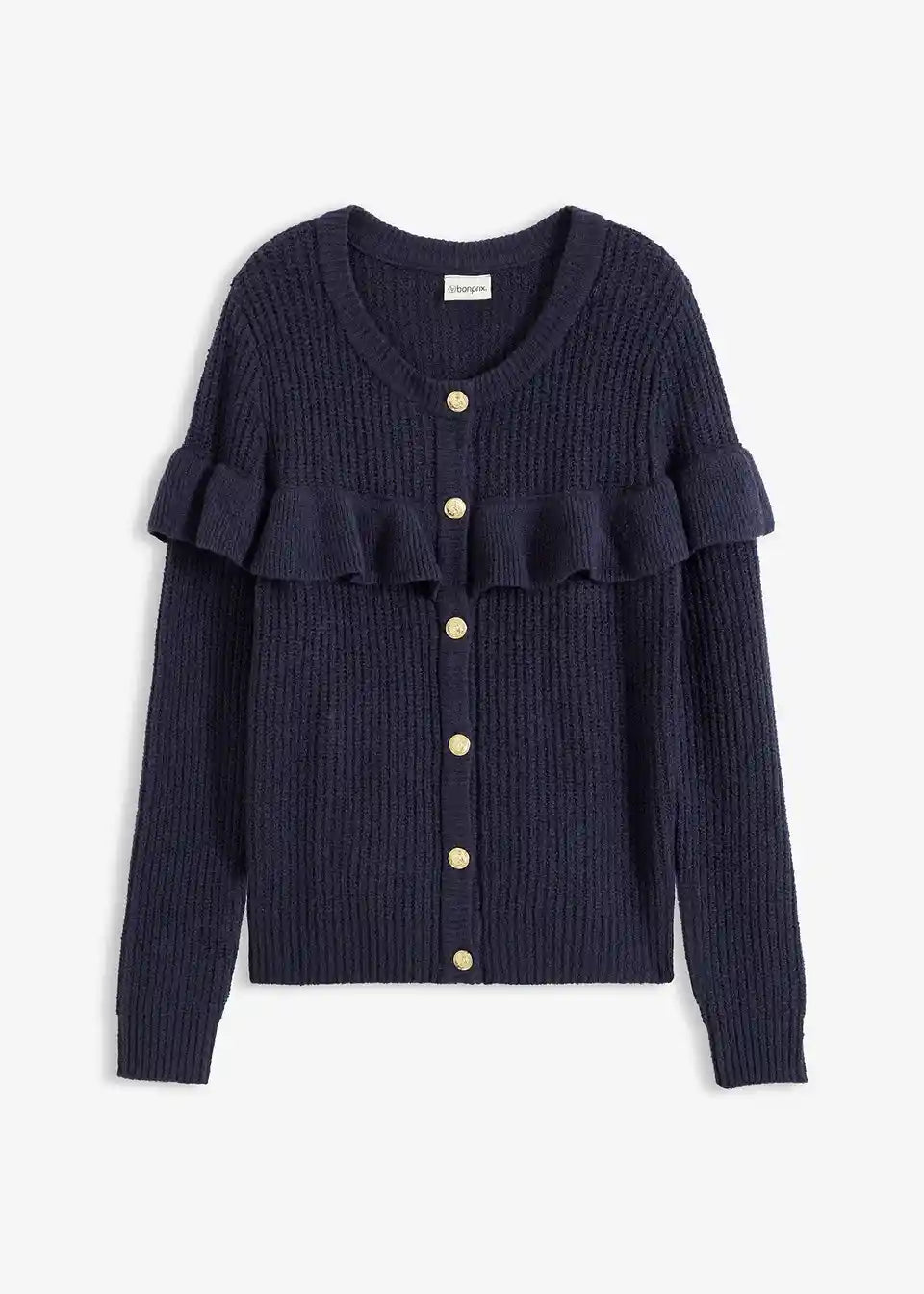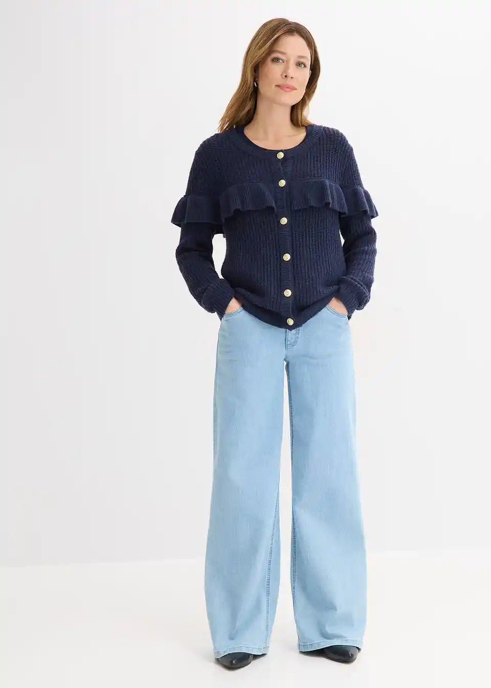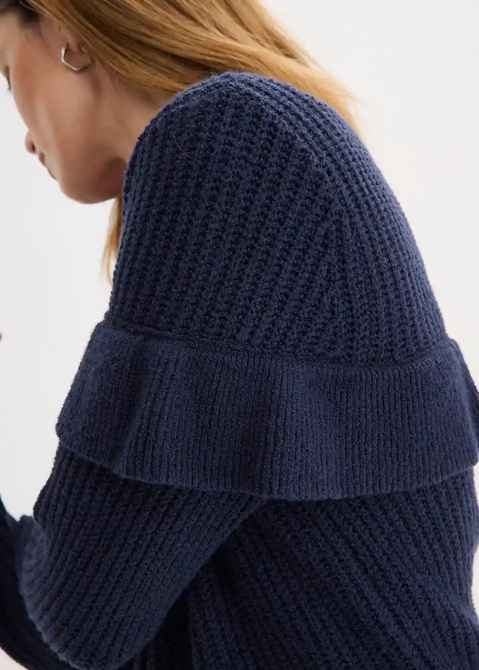 Prijetno mehka pletena jopa z ekstravagantnimi volani