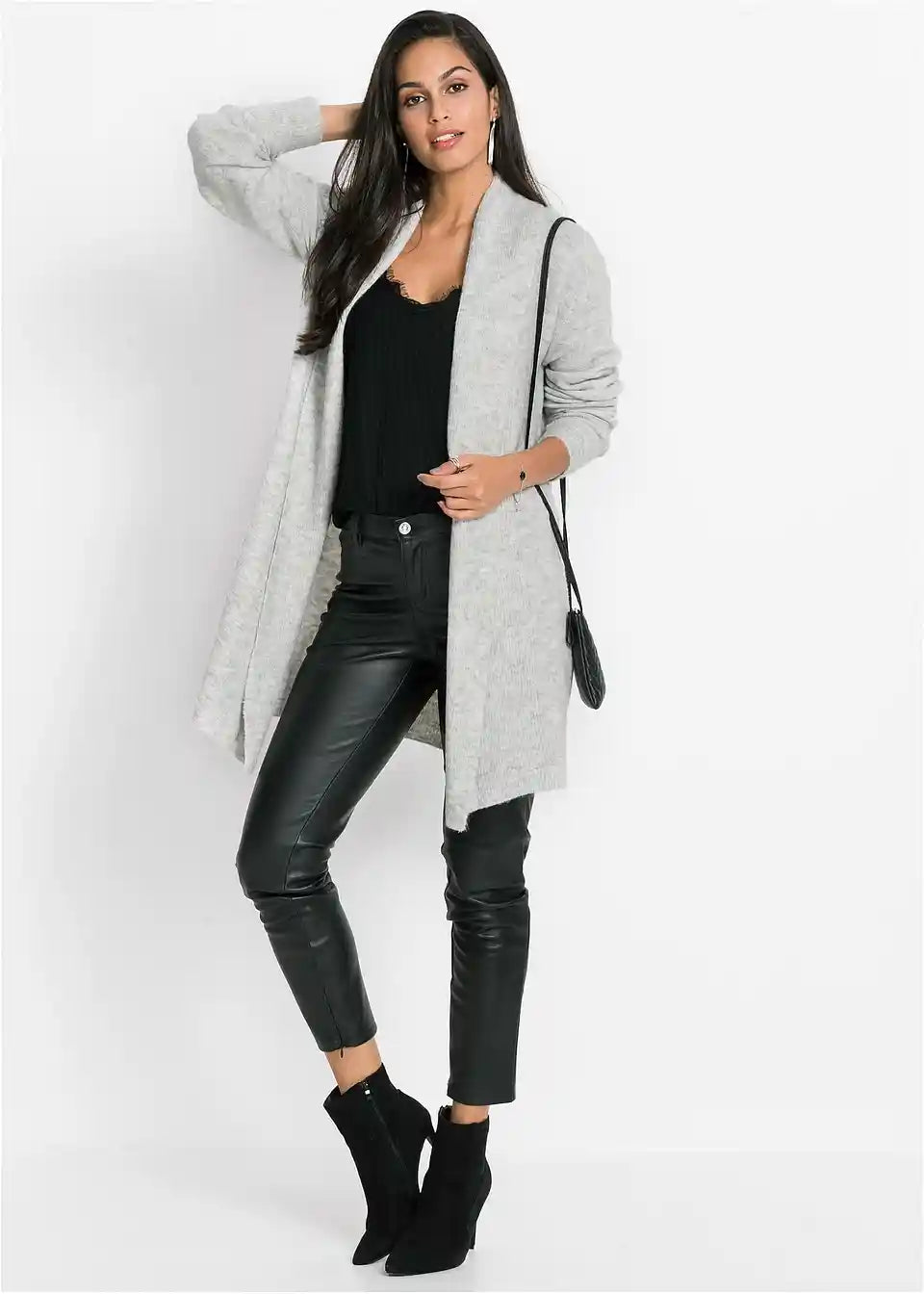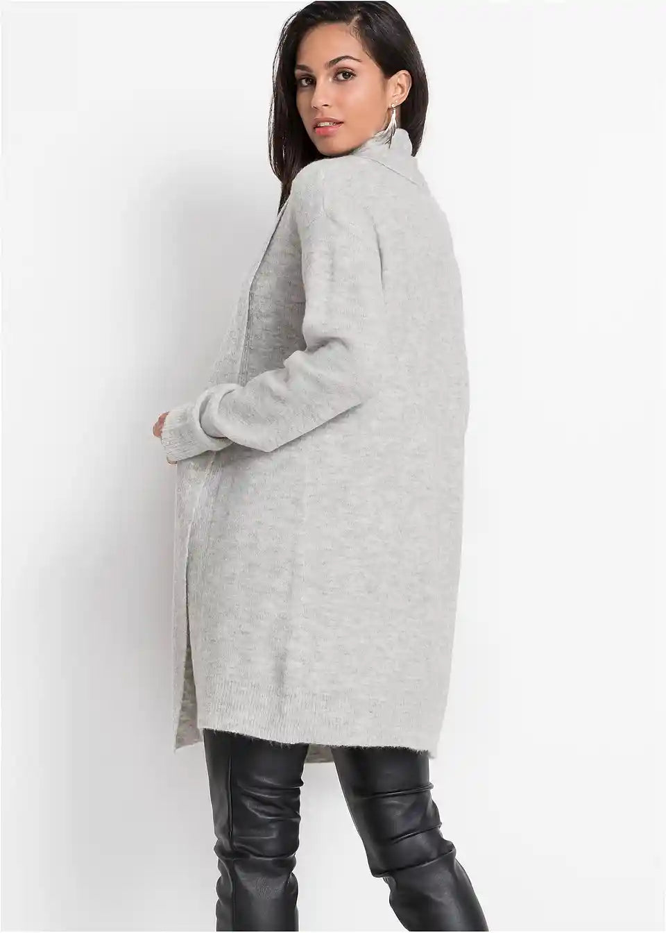 Tanka rebrasta pletena jopica z dolgim krojem in šal ovratnikom
