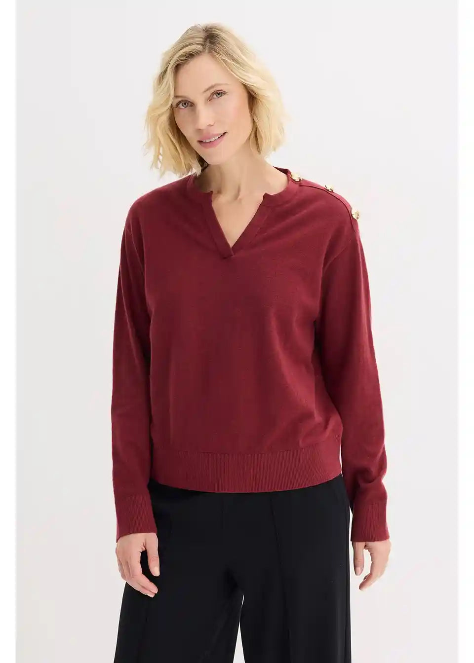 Bombažni pulover z detajlom gumba
