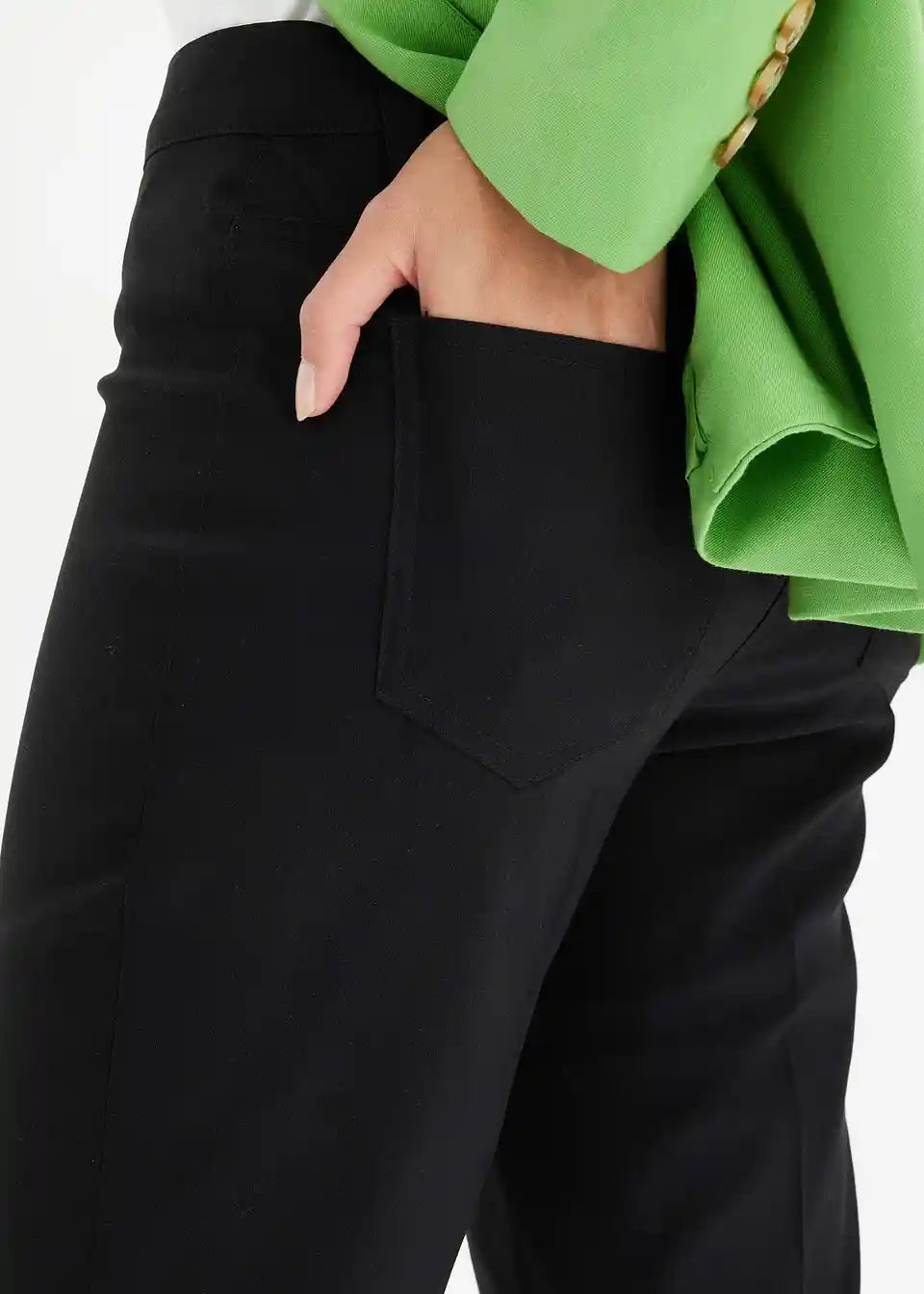 Prilegajoče hlače z zankami za pas in žepi na zadnji strani