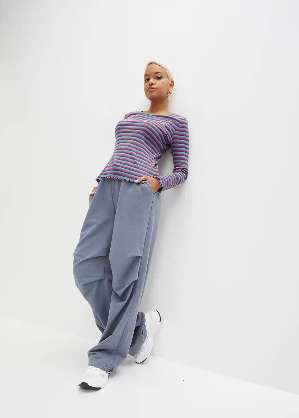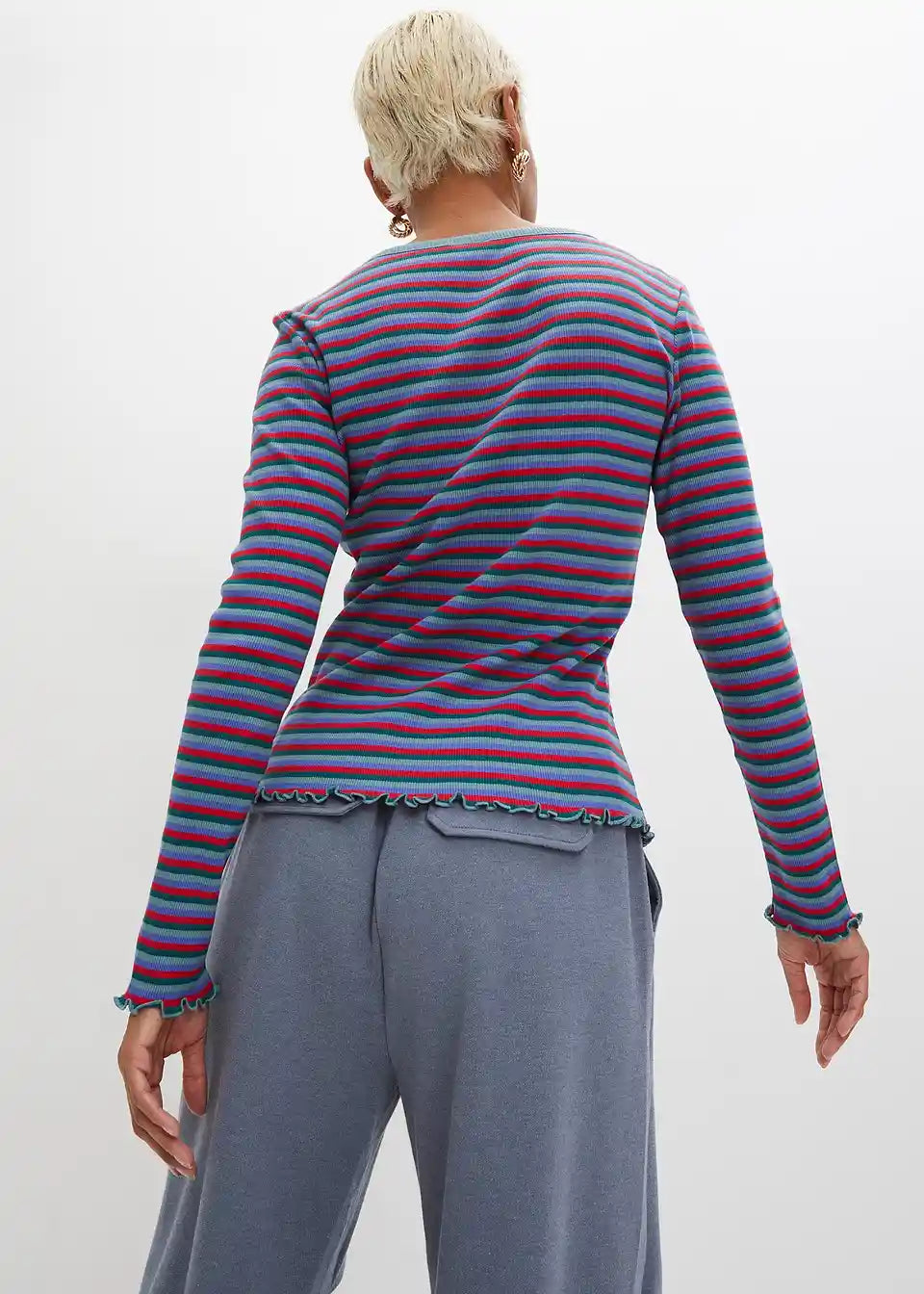 Lepa rebrasta majica s črtami in okroglim izrezom