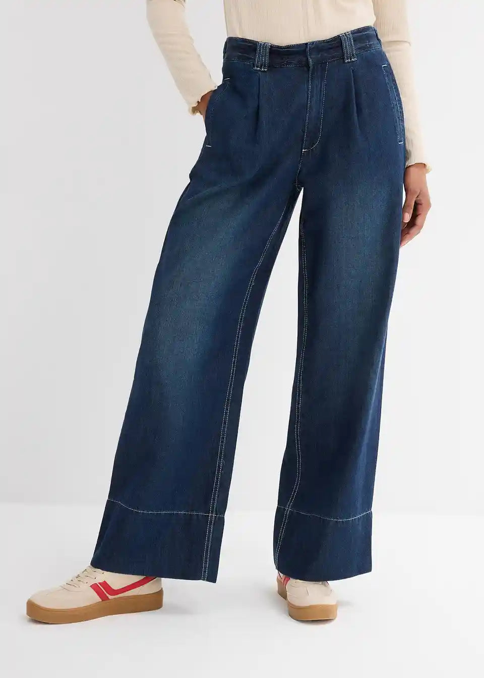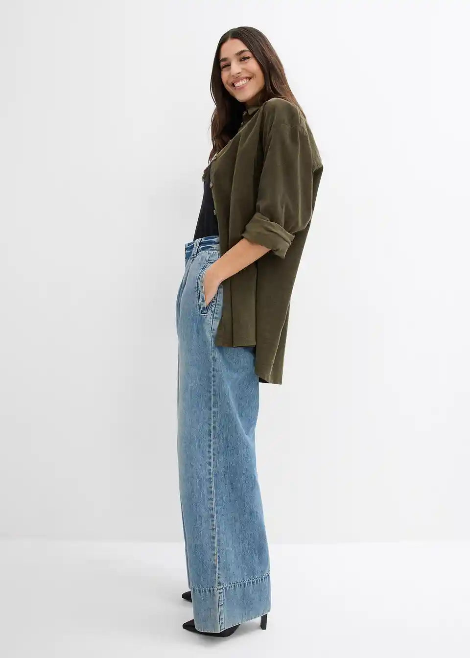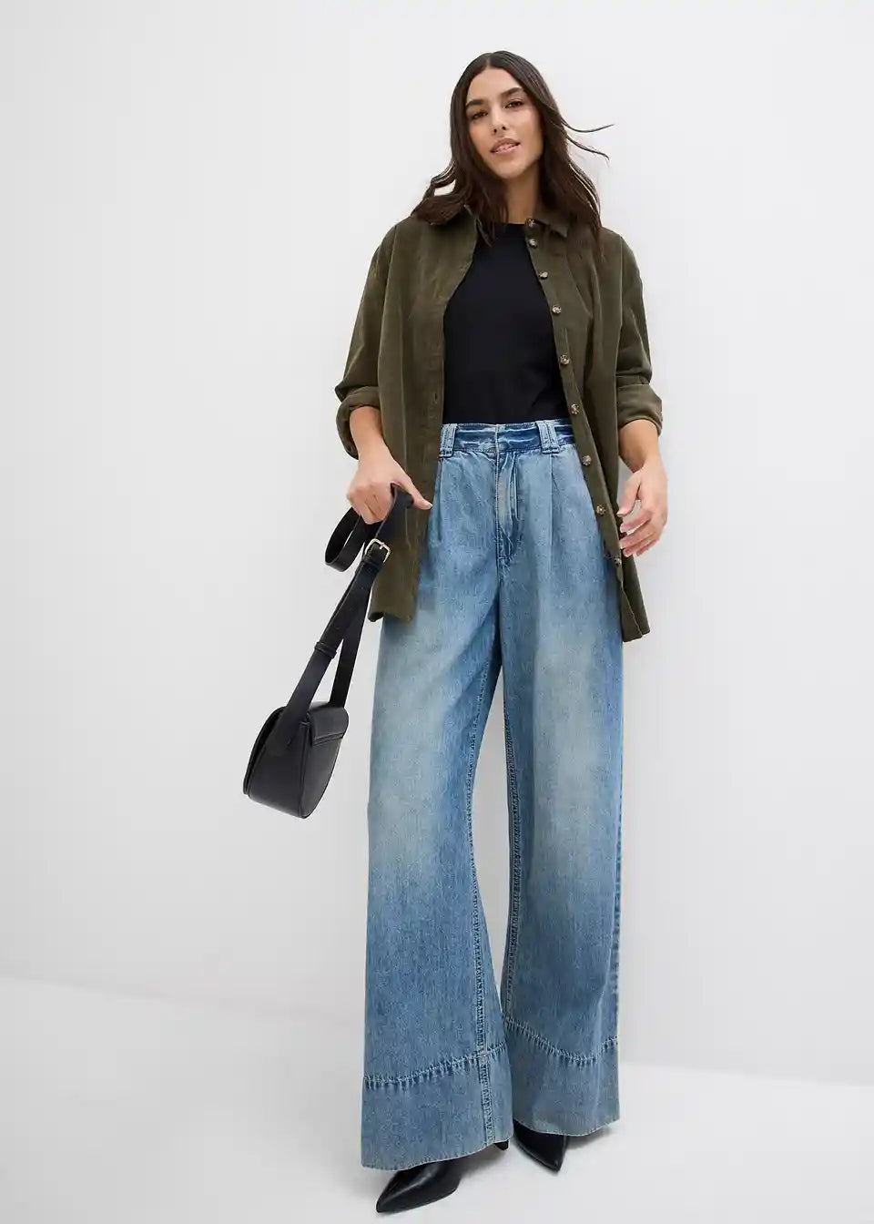 Kavbojke z visokim pasom in širokimi hlačnicami