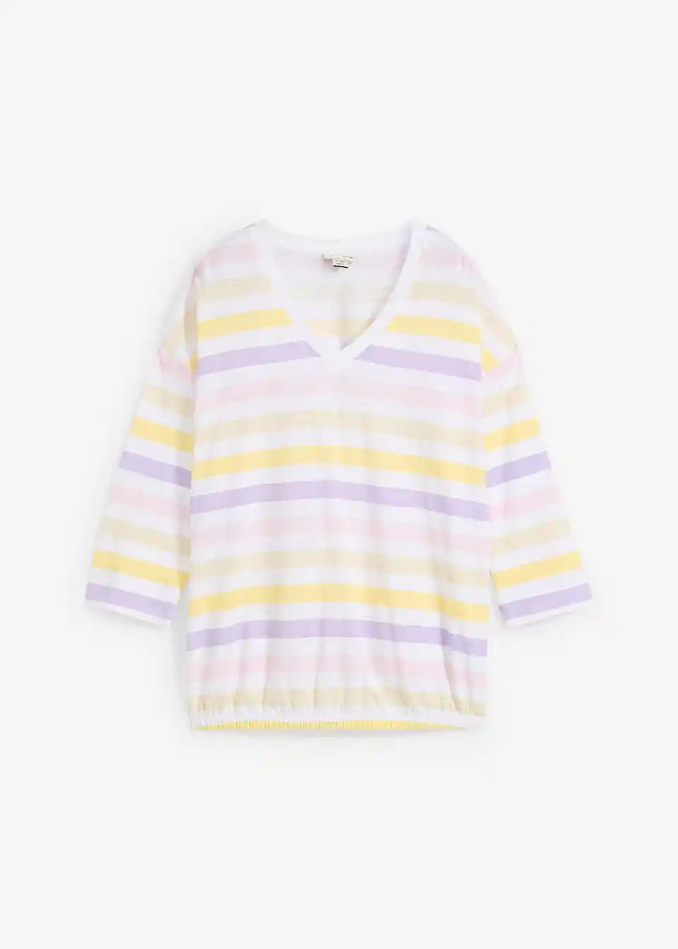 Slub majica iz bombaža s 3/4 rokavi in V-izrezom v črtastem videzu