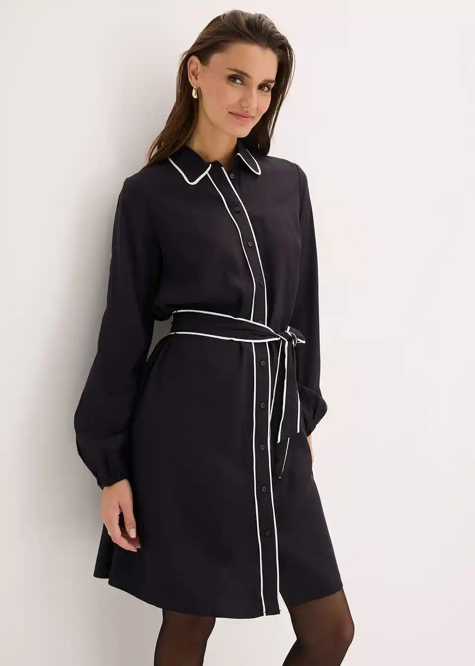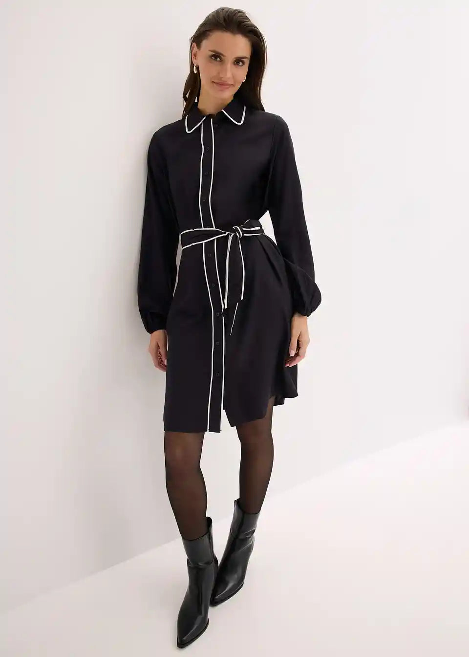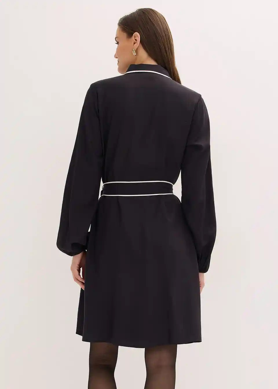 Obleka z zakrito letvijo za zapenjanje z gumbi in paspulami