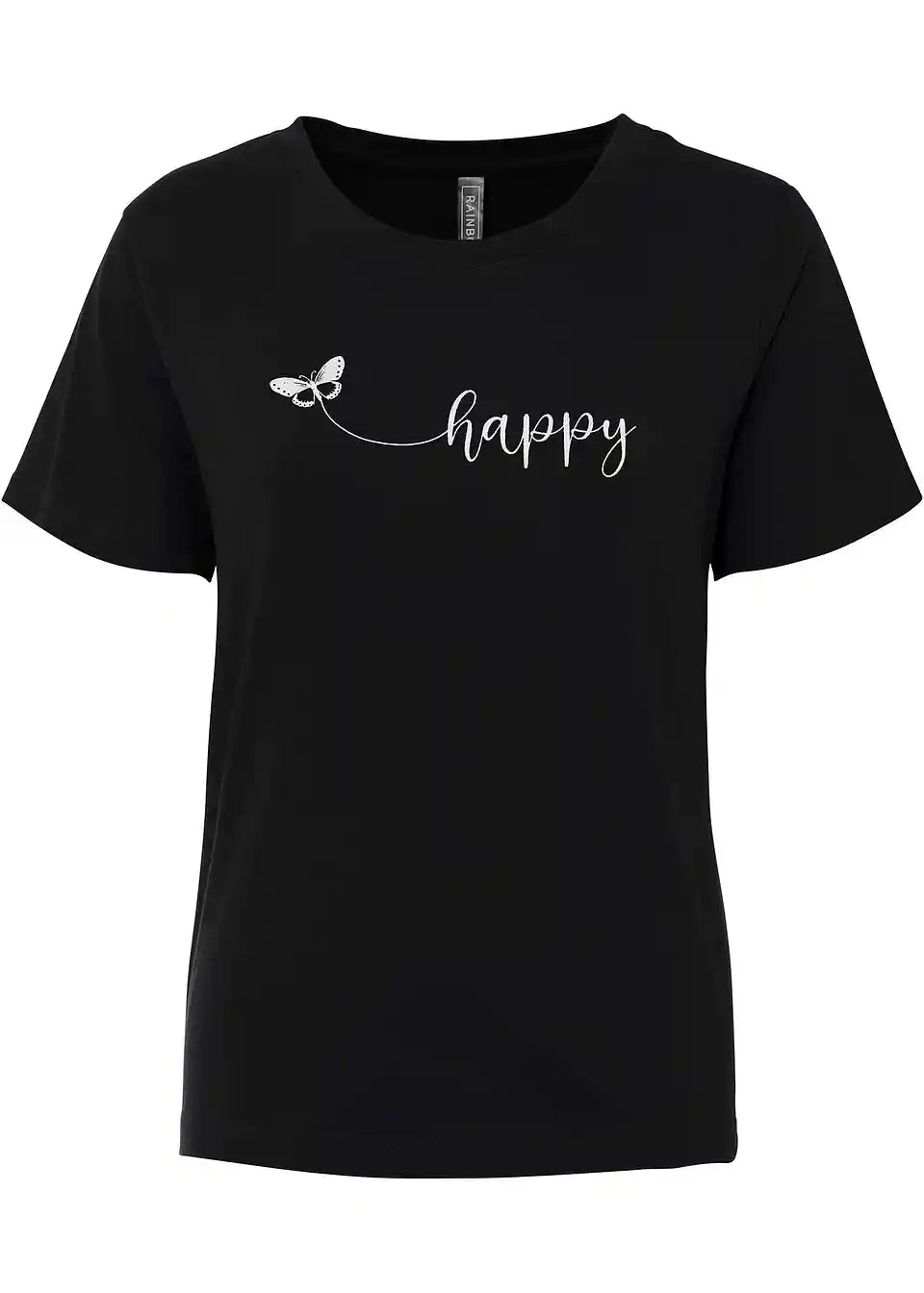 Z natisom in okroglim izrezom. Skupna dolžina velikosti 36/38 je približno 60 cm.