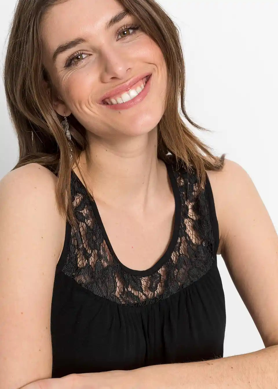 zgornji material: 95% viskoza (certificirana), 5% elastan, čipka: 70% poliamid, 30% poliester