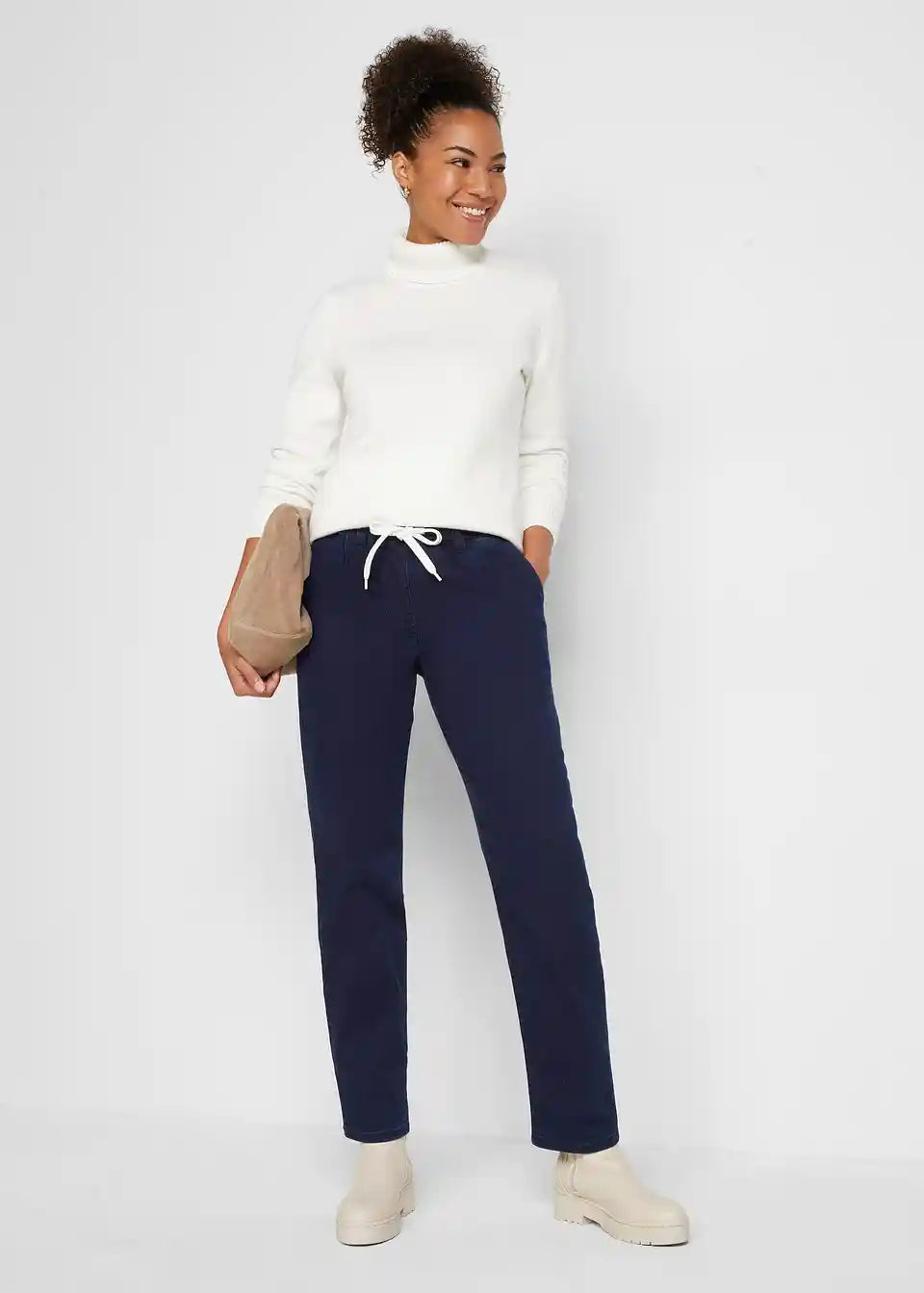 Modne toplotne kavbojke z elastičnim pasom, znotraj brušene