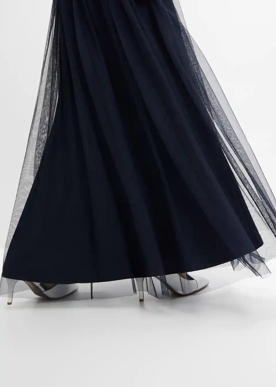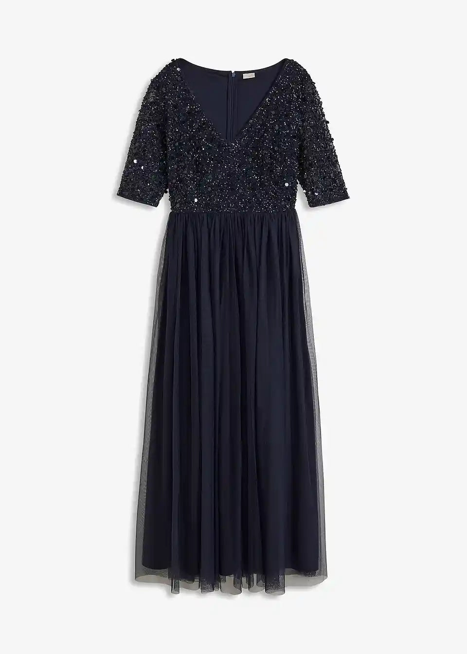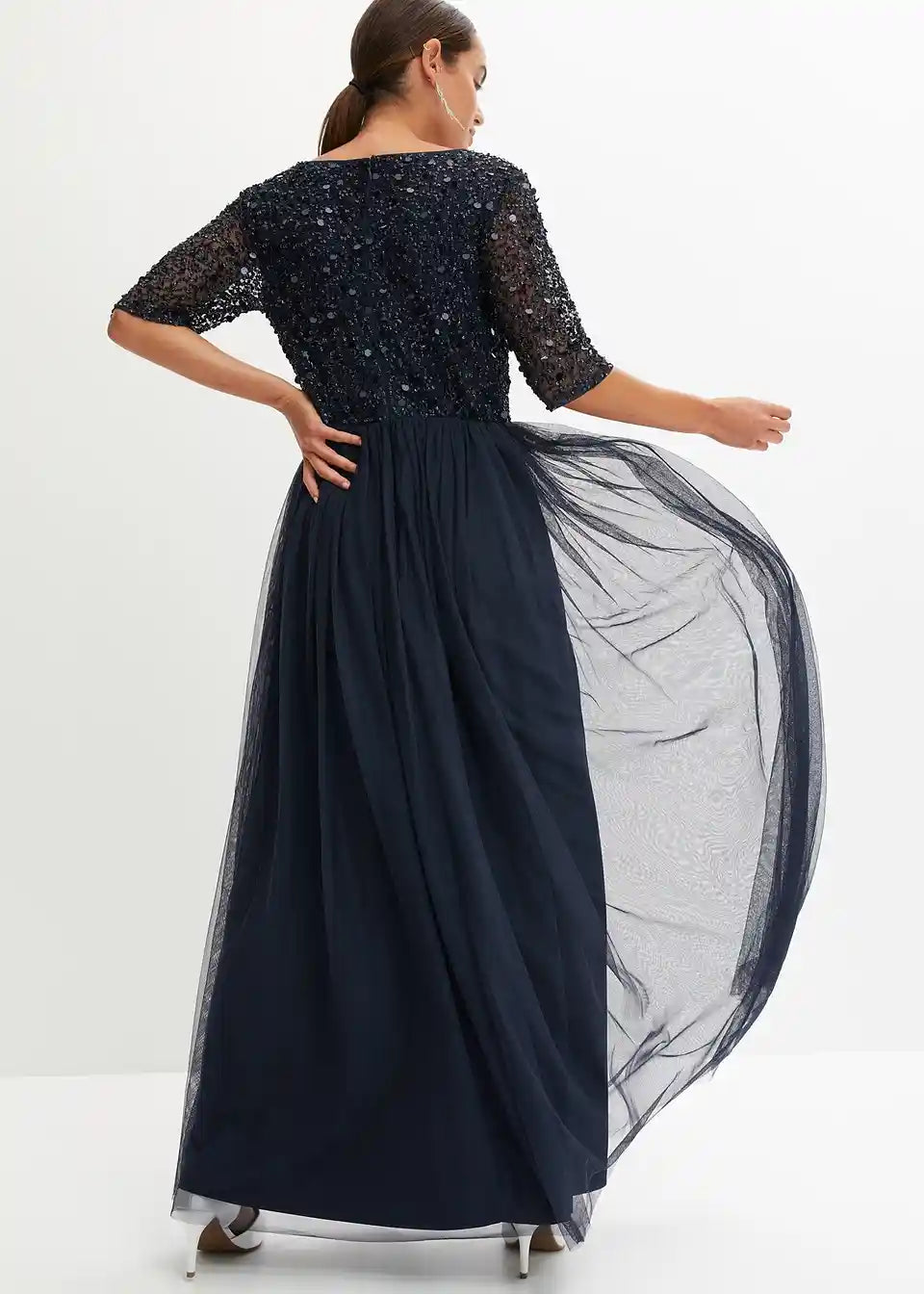 Elegantna obleka s čudovitim zgornjim delom z bleščicami in šifon krilom