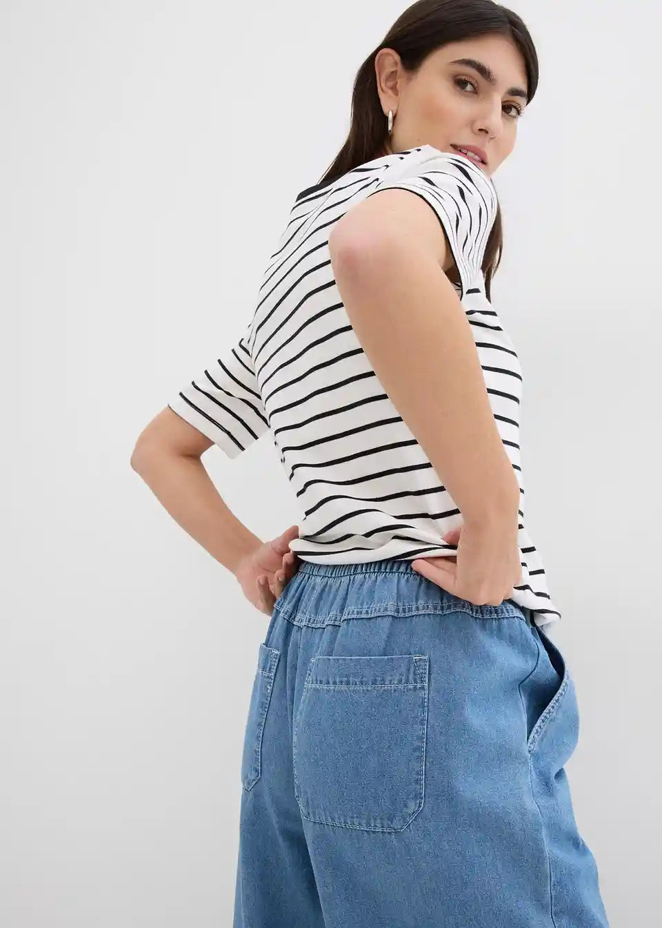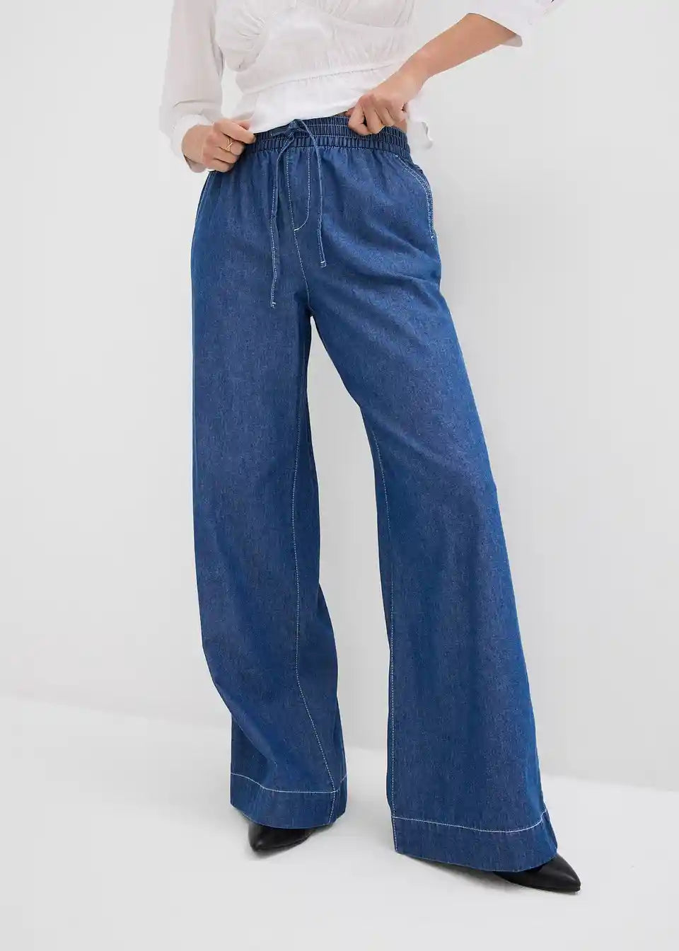 Široke kavbojke z elastiko v pasu