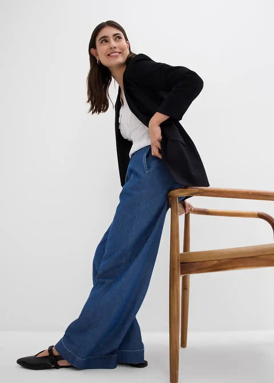 Kavbojke s širokimi hlačnicami in srednje visokim udobnim pasom