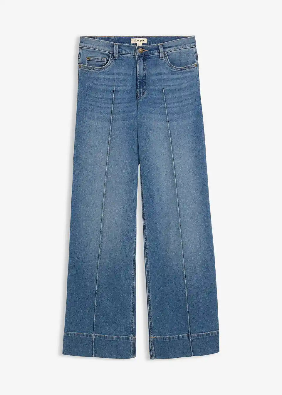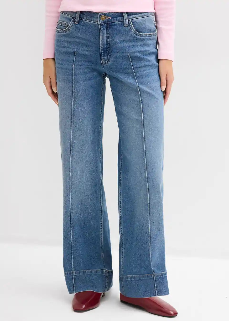 Kavbojke s širokimi hlačnicami in srednje visokim pasom v dolgem kroju