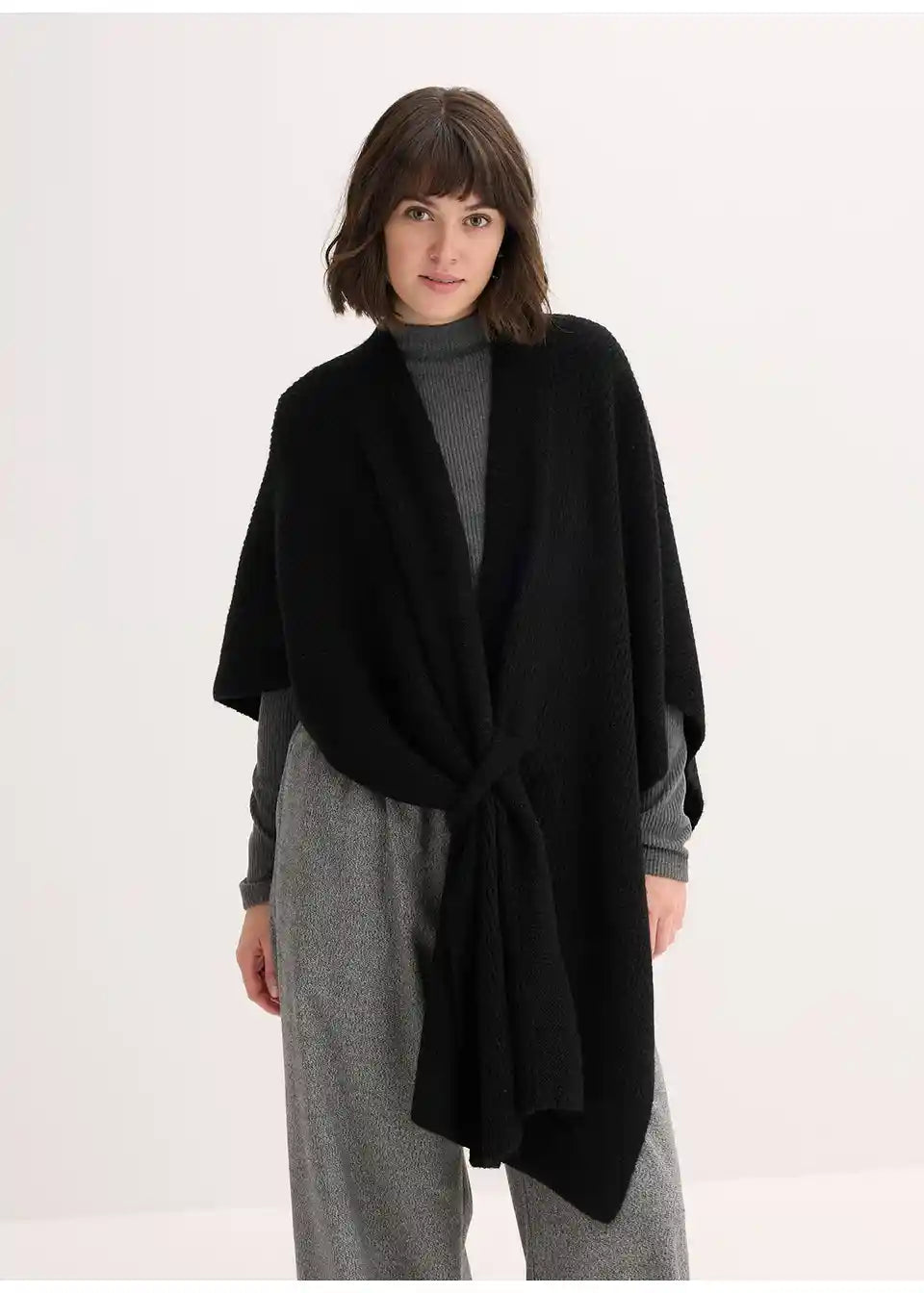 Udoben pončo-šal z detajlom vozla