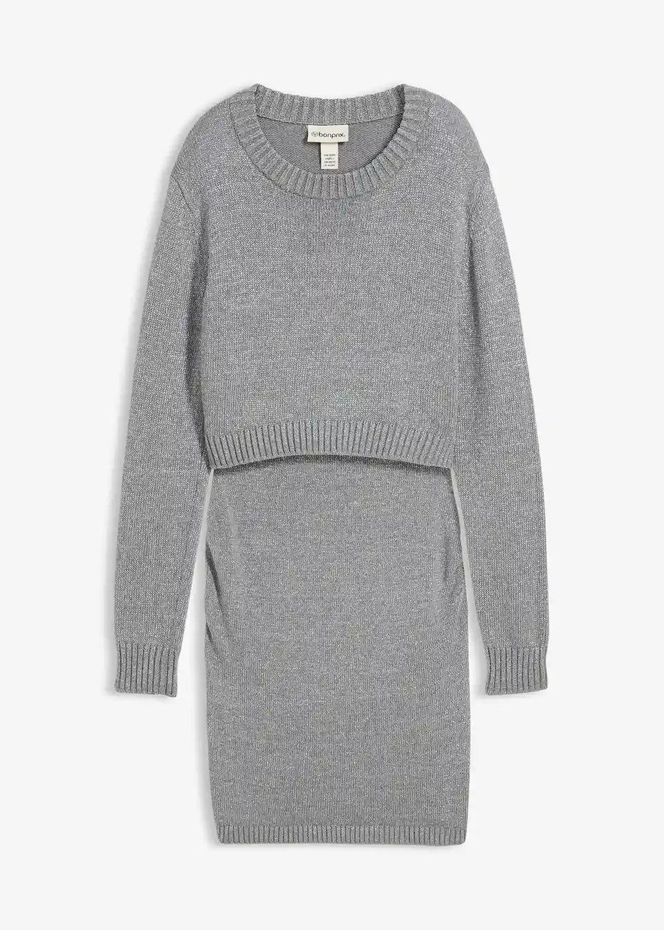 2-delni nosečniški set puloverja in krila iz bombaža s sijočimi nitmi