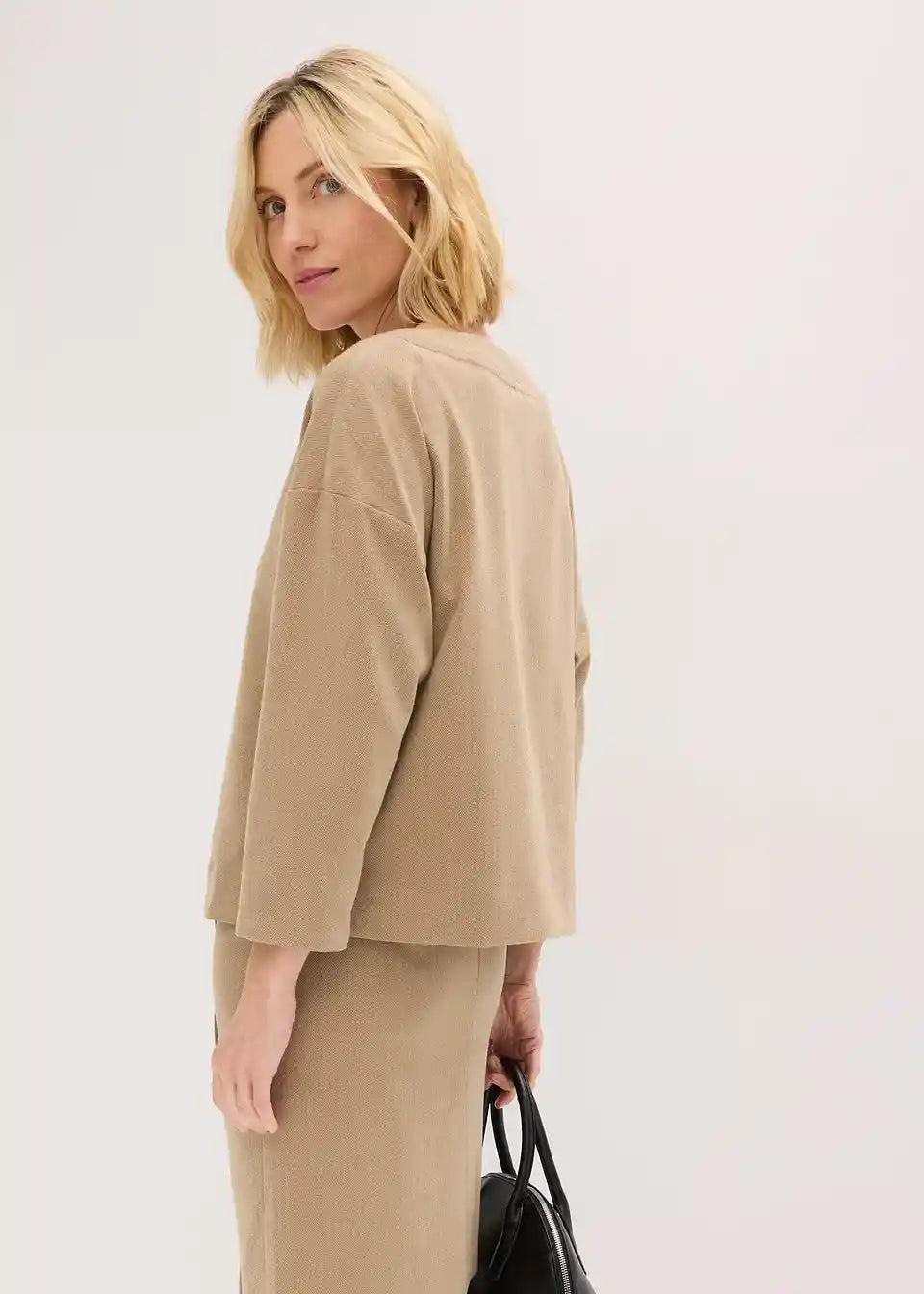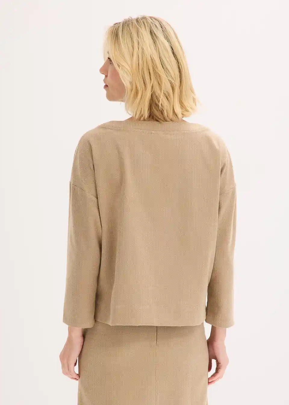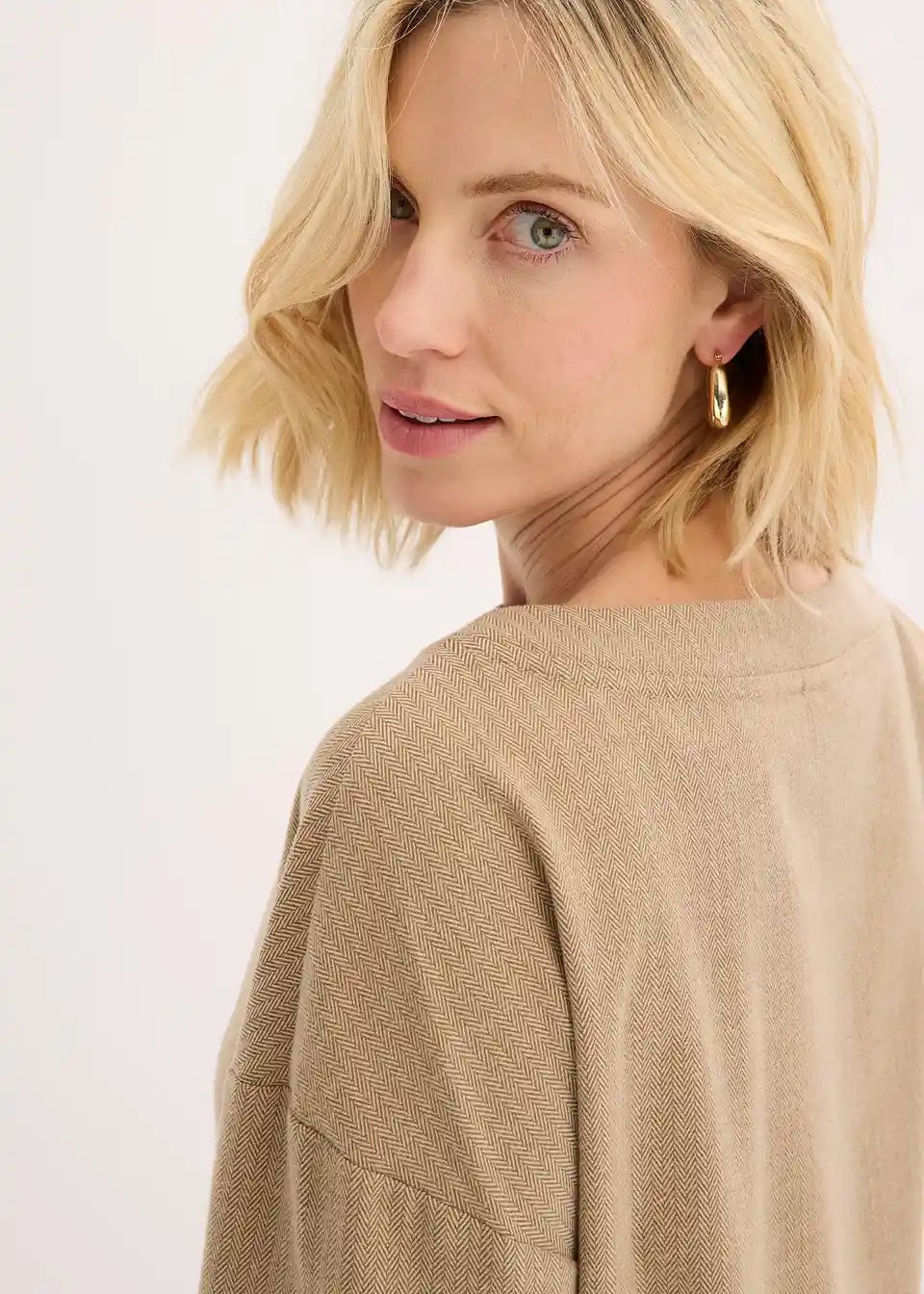 Tunika z vzorcem ribje kosti iz kompaktnega materiala