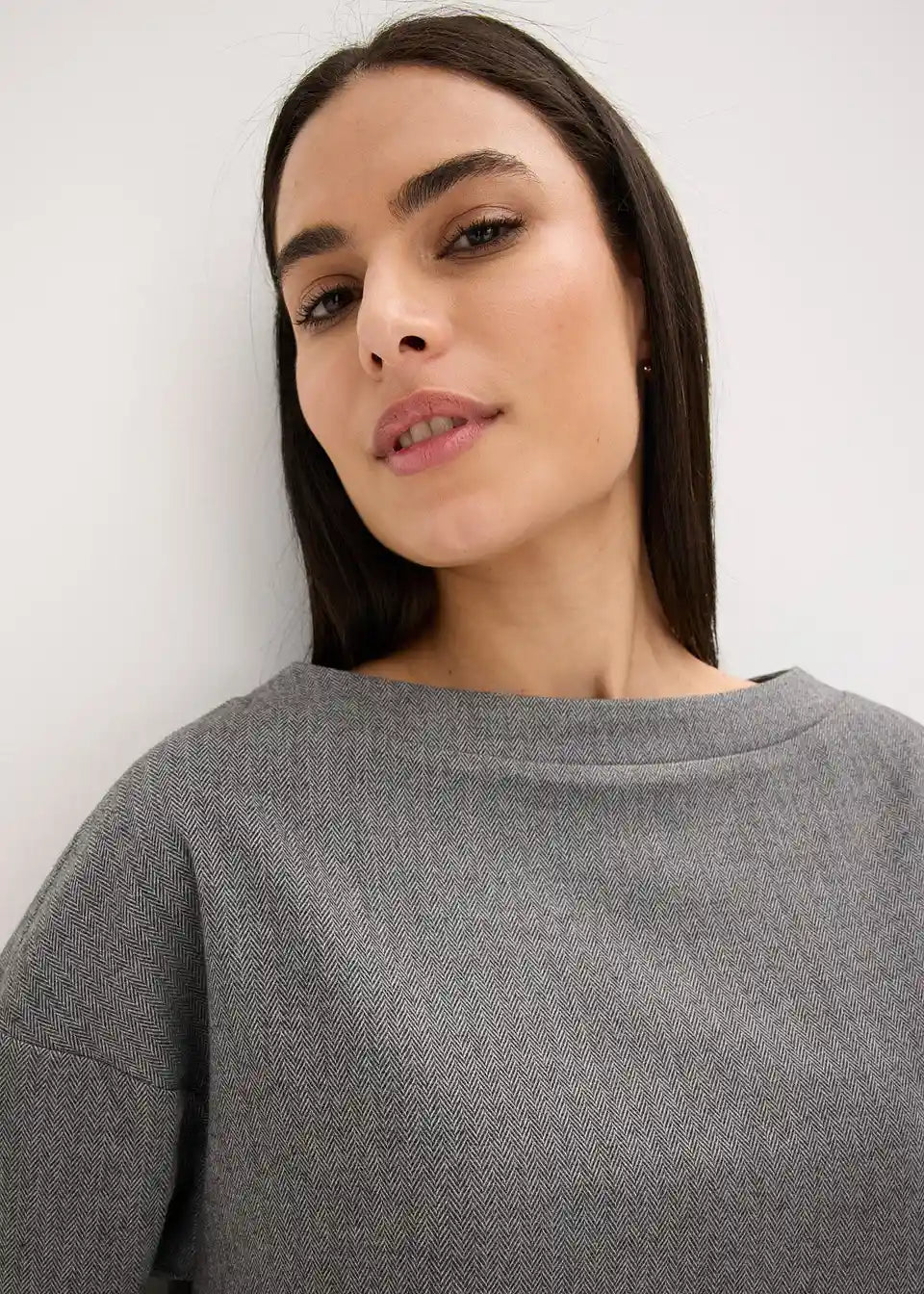 Elegantna tunika z vzorcem ribje kosti iz kompaktnega materiala