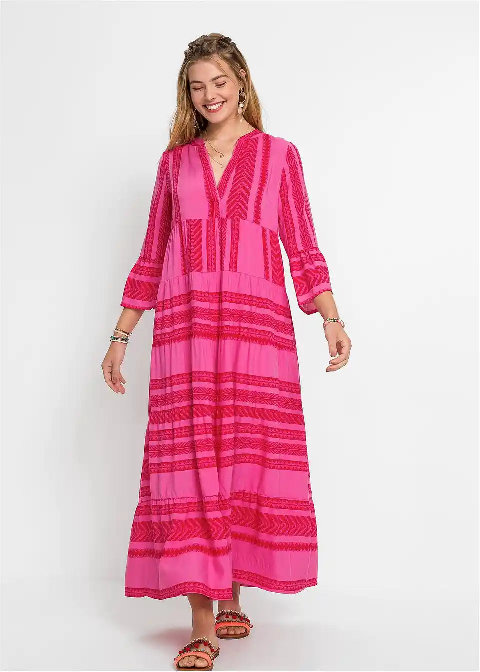 Z 3/4 rokavi in volančki. Vsaka obleka je unikat. Dolžina v vel. 38 približno 136 cm.