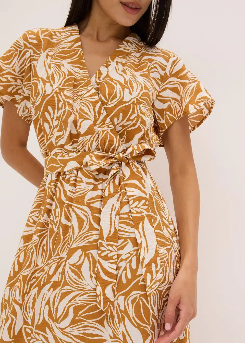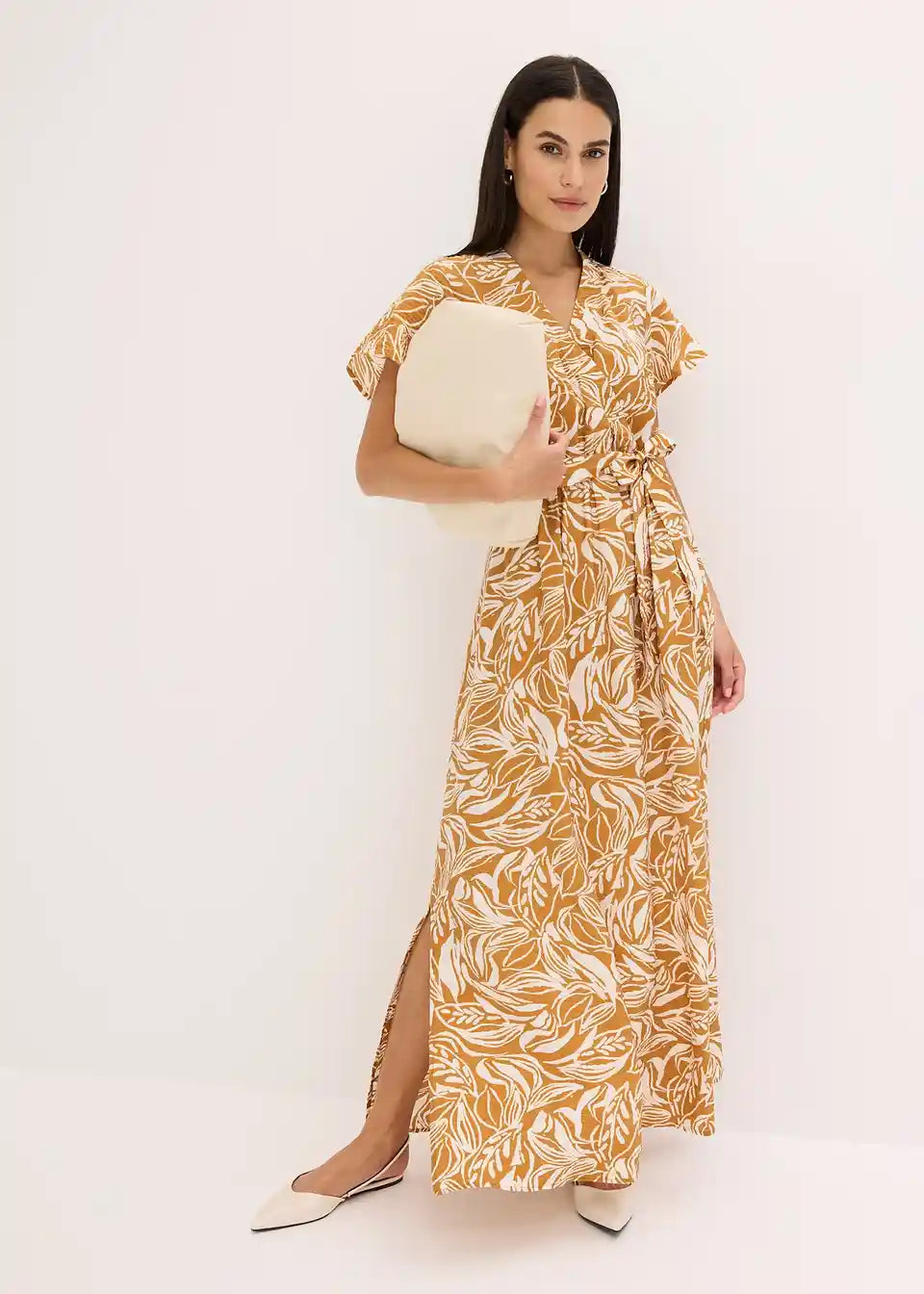 modna tiskana maksi obleka s trakom za zavezovanje v pasu