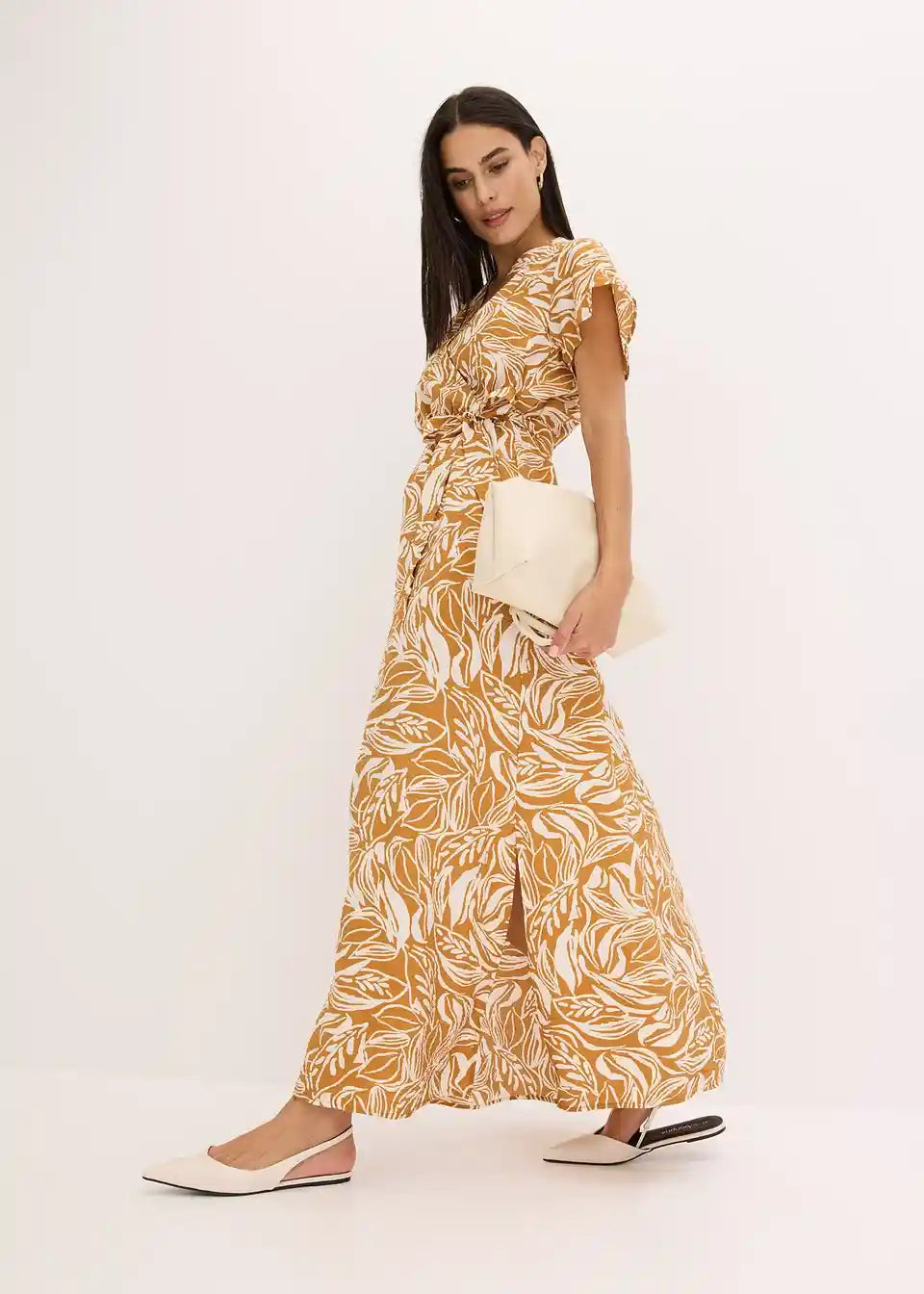 Potiskana dolga obleka iz viskozne mešanice