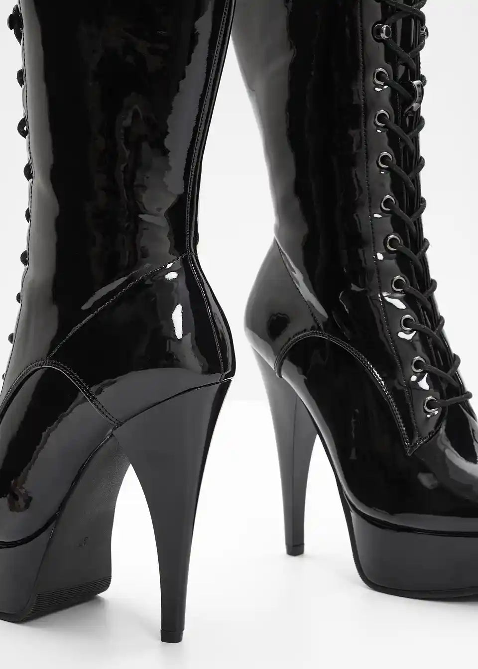 Erotični gležnjarji z vezalkami z debelim podplatom v lakastem videzu