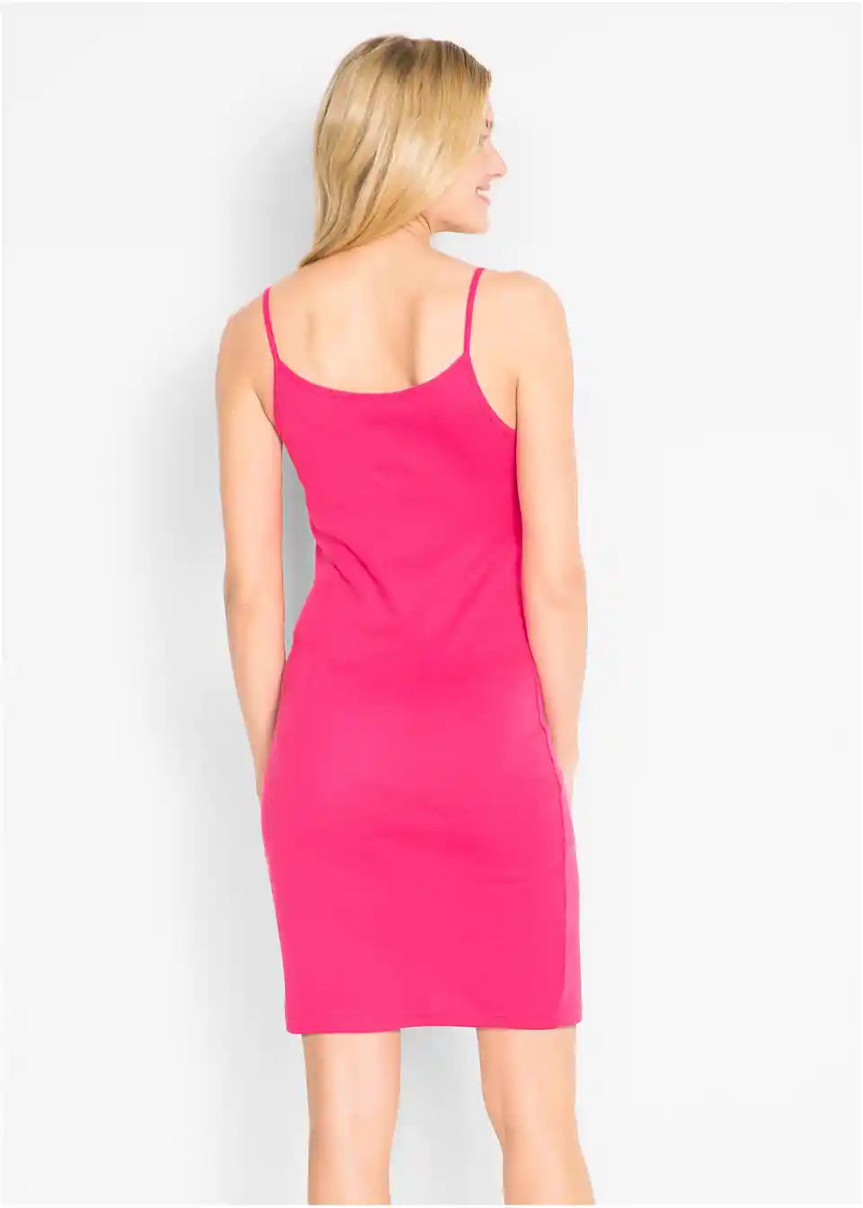 Ta privlačen komplet je sestavljen iz dveh različnih barvnih modelov. Figura-prilegajoče obleke v kompletu dveh kosov so privlačna osnova za številne kombinacije. V vročih poletnih dneh so s tanko bluzo odličen poletni outfit. Ko postane hladneje, jih lahko nosite s pletenim suknjičem. Obleke iz kolekcije bpc s tankimi naramnicami in okroglim izrezom so primerne tudi kot spodnje obleke za kvačkane obleke in druge polprosojne modele.