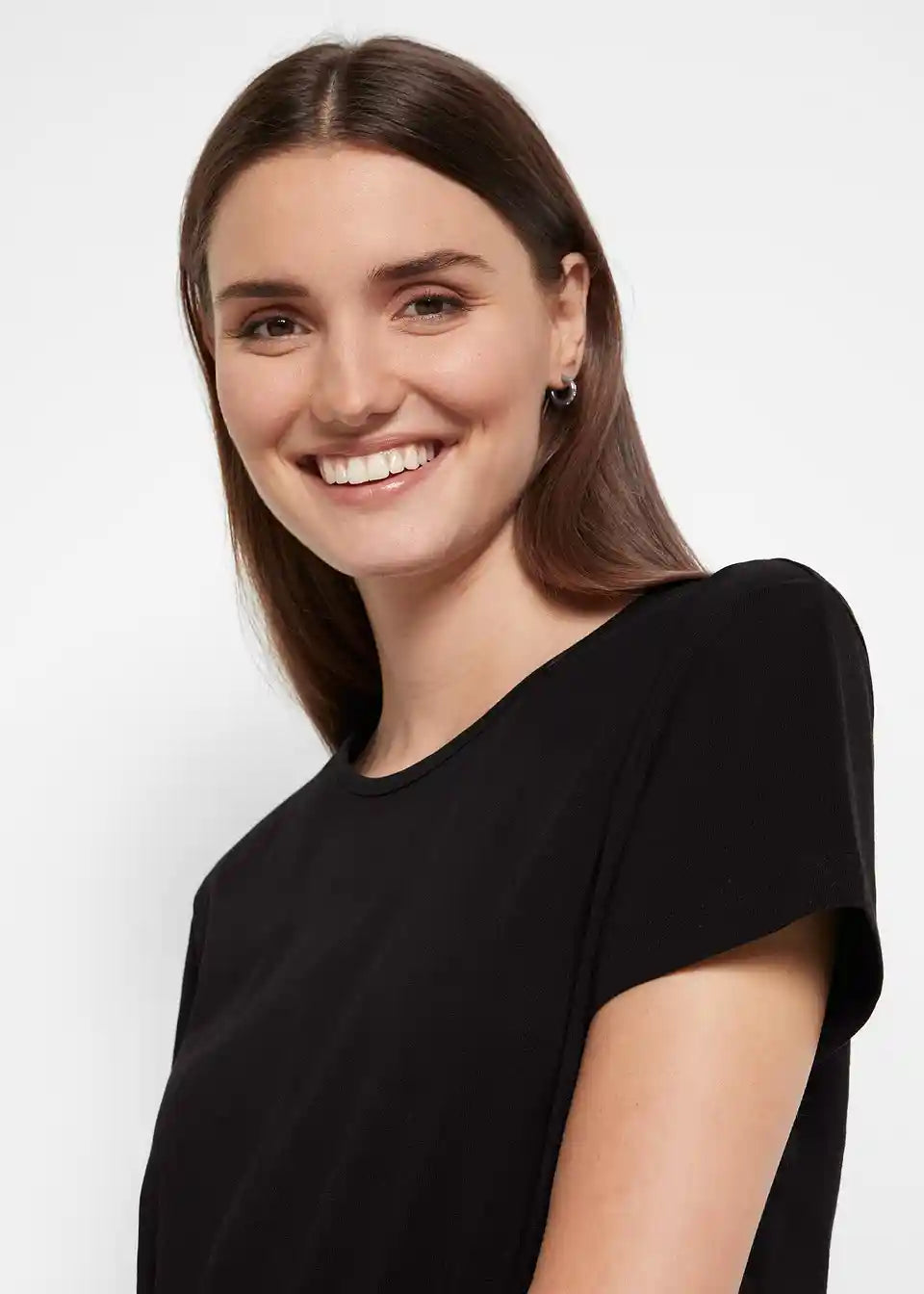 Ohlapno in udobno krojeno bombažno obleko z okroglim izrezom.