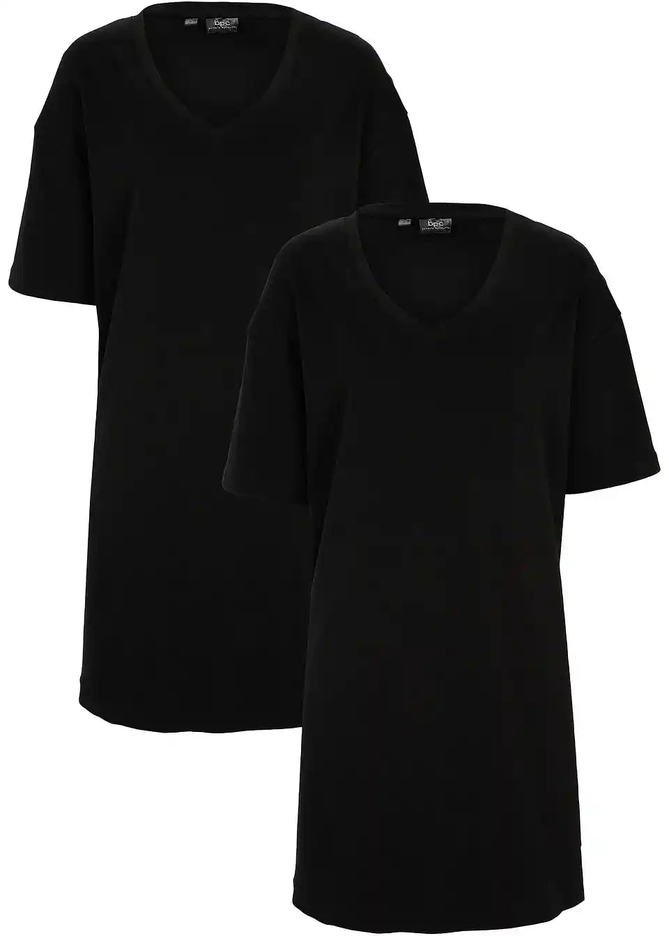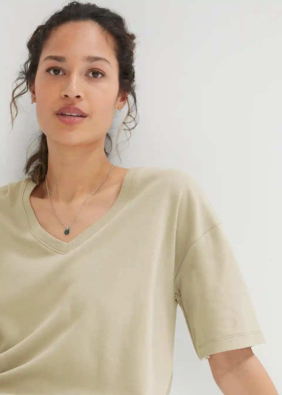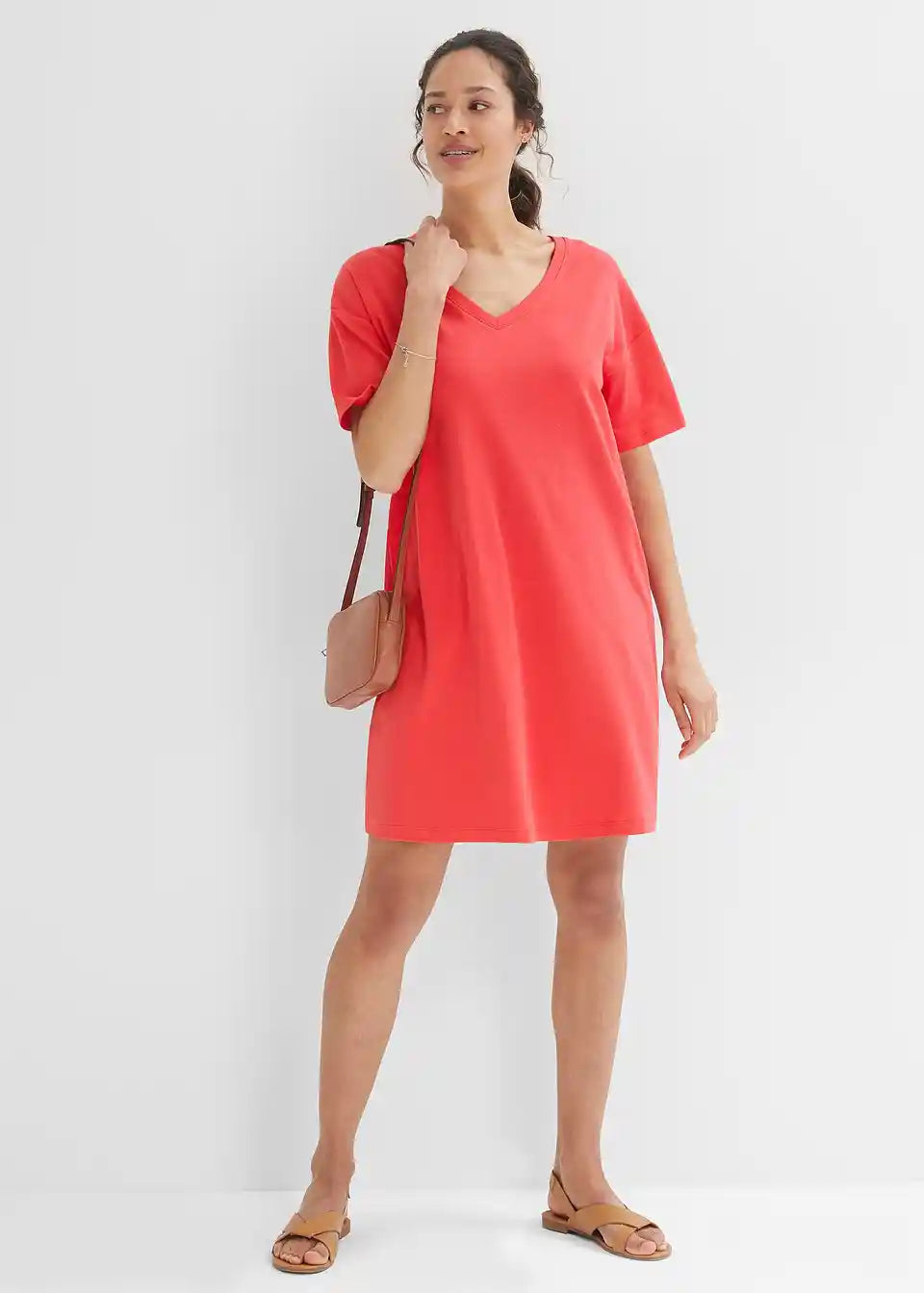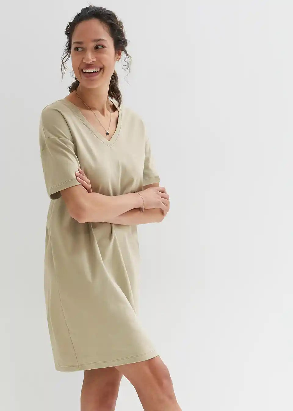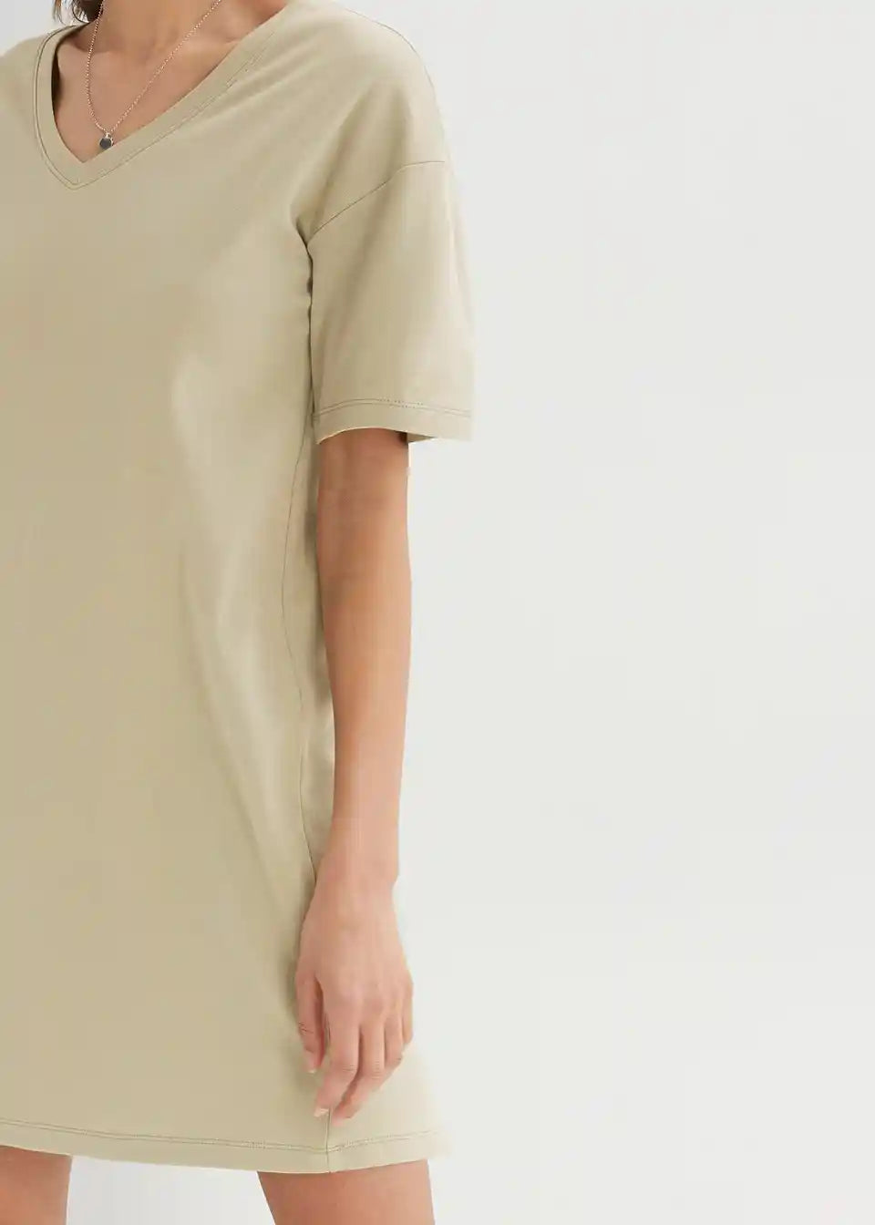 Ohlapna obleka z V-izrezom in ekološkim bombažem (2 kosa)