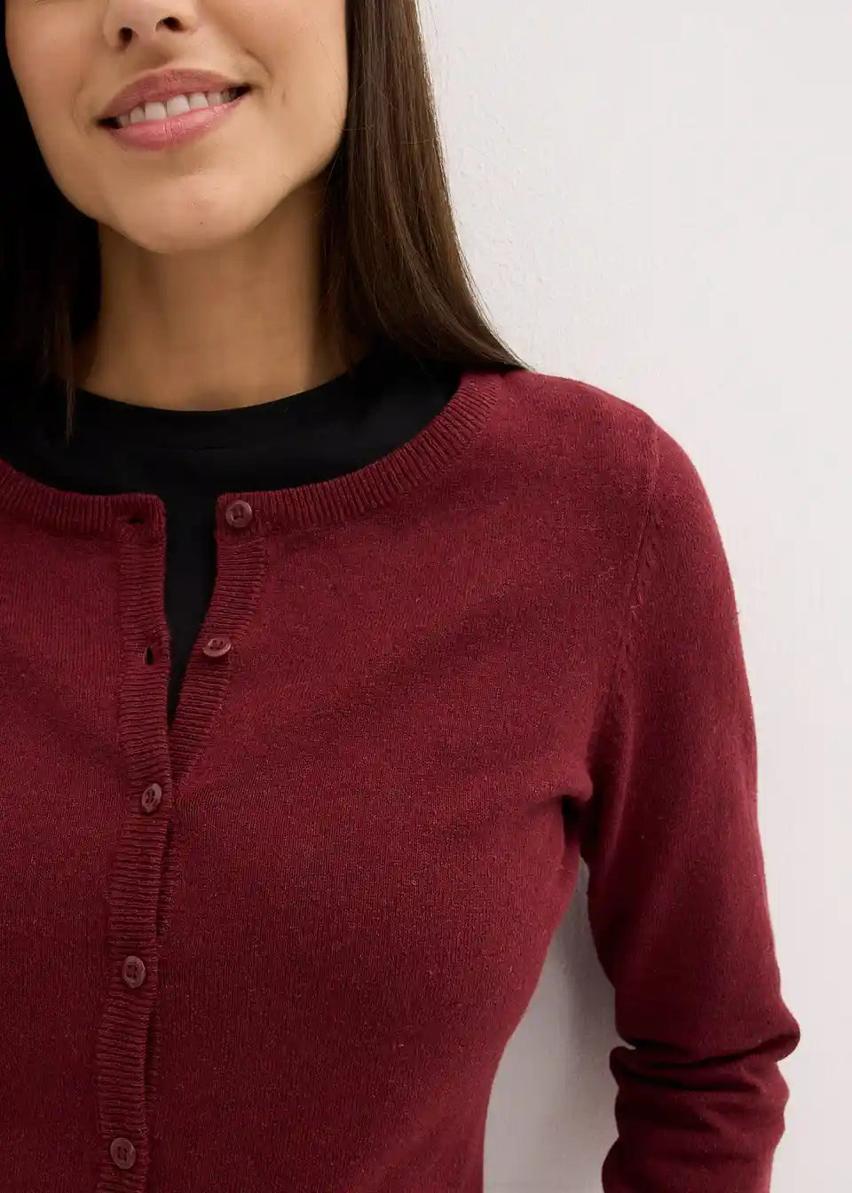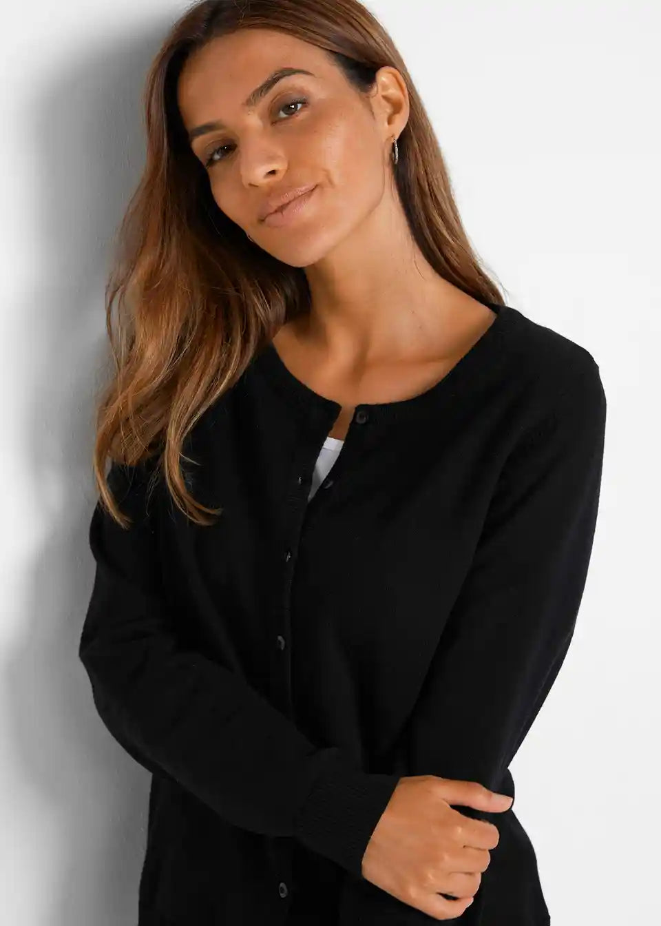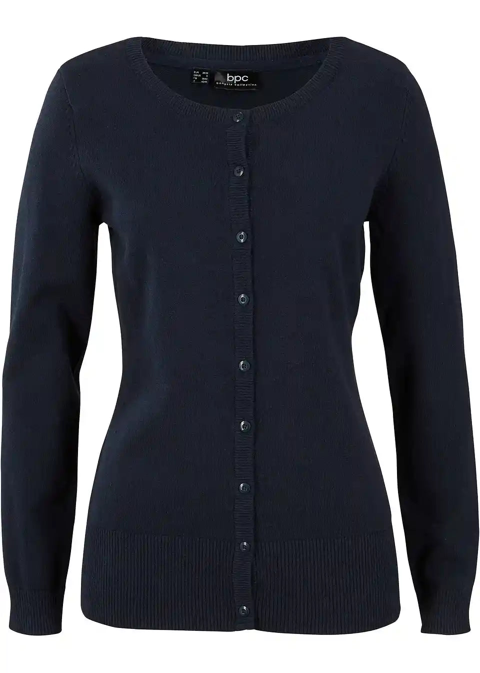 Pulover znamke b.p.c Casual iz finega pletenega materiala s knofastim zapenjanjem, dolžina od cca. 64 cm (vel. 36/38) do cca. 70 cm (vel. 48/50), primeren za strojno pranje