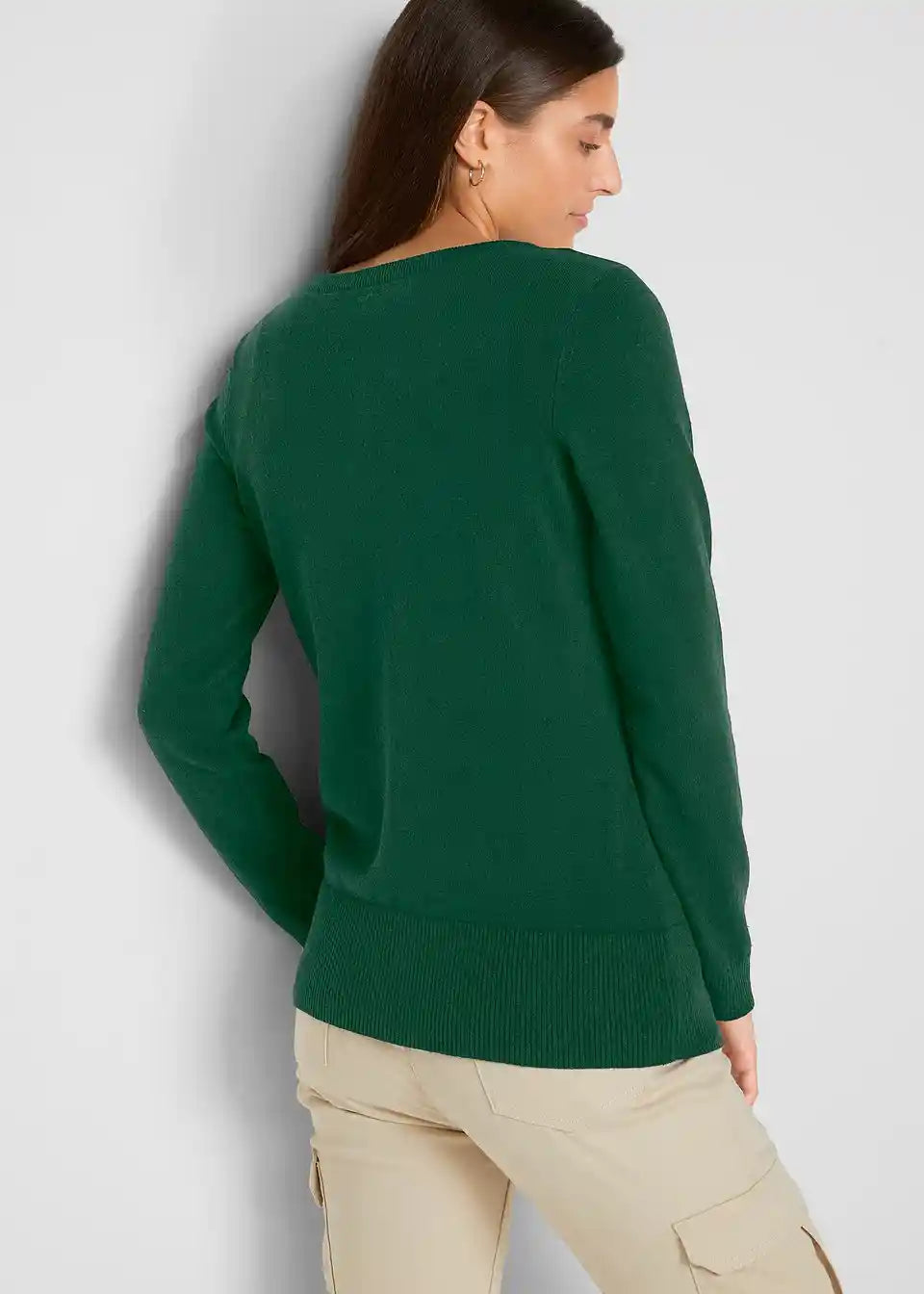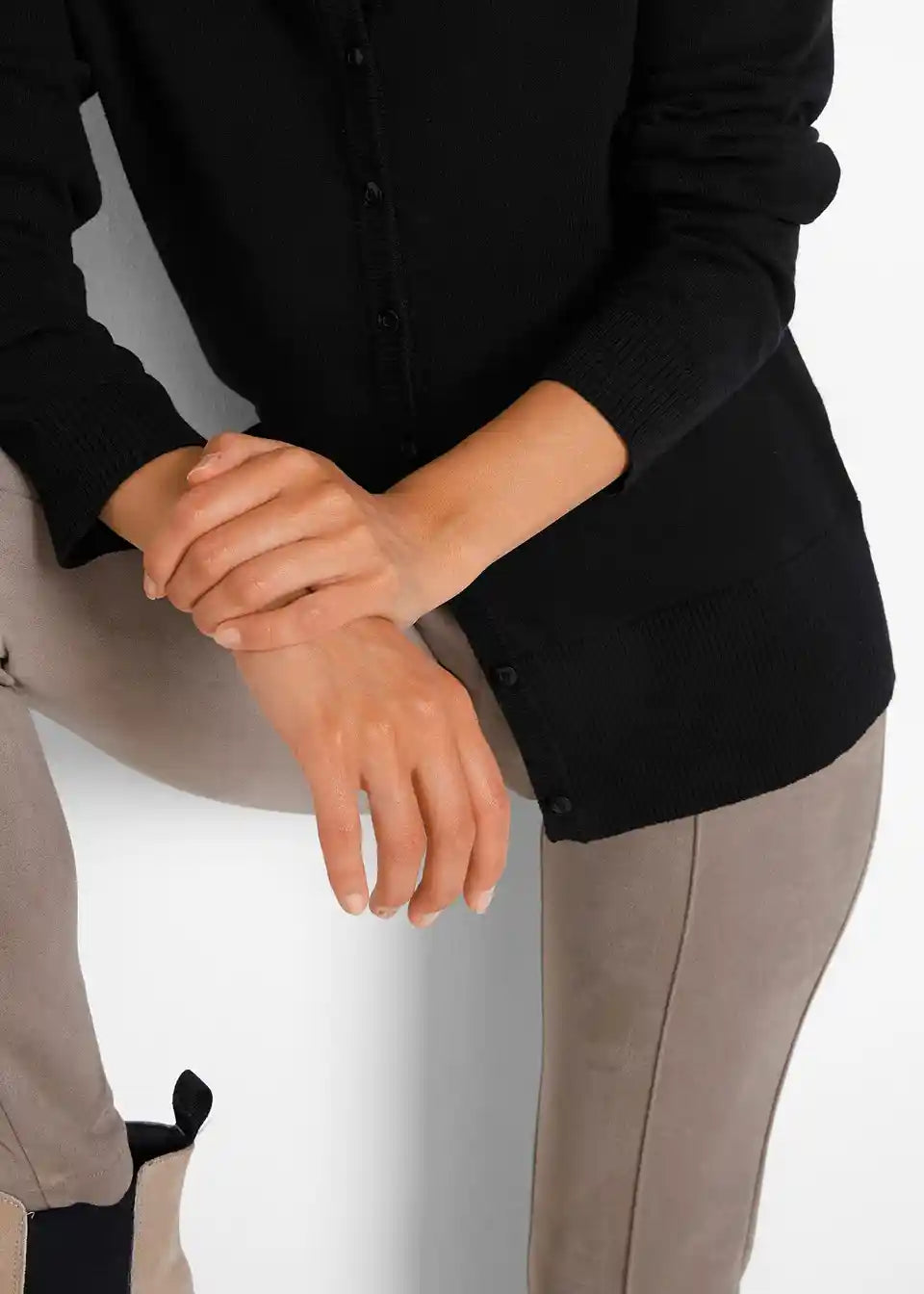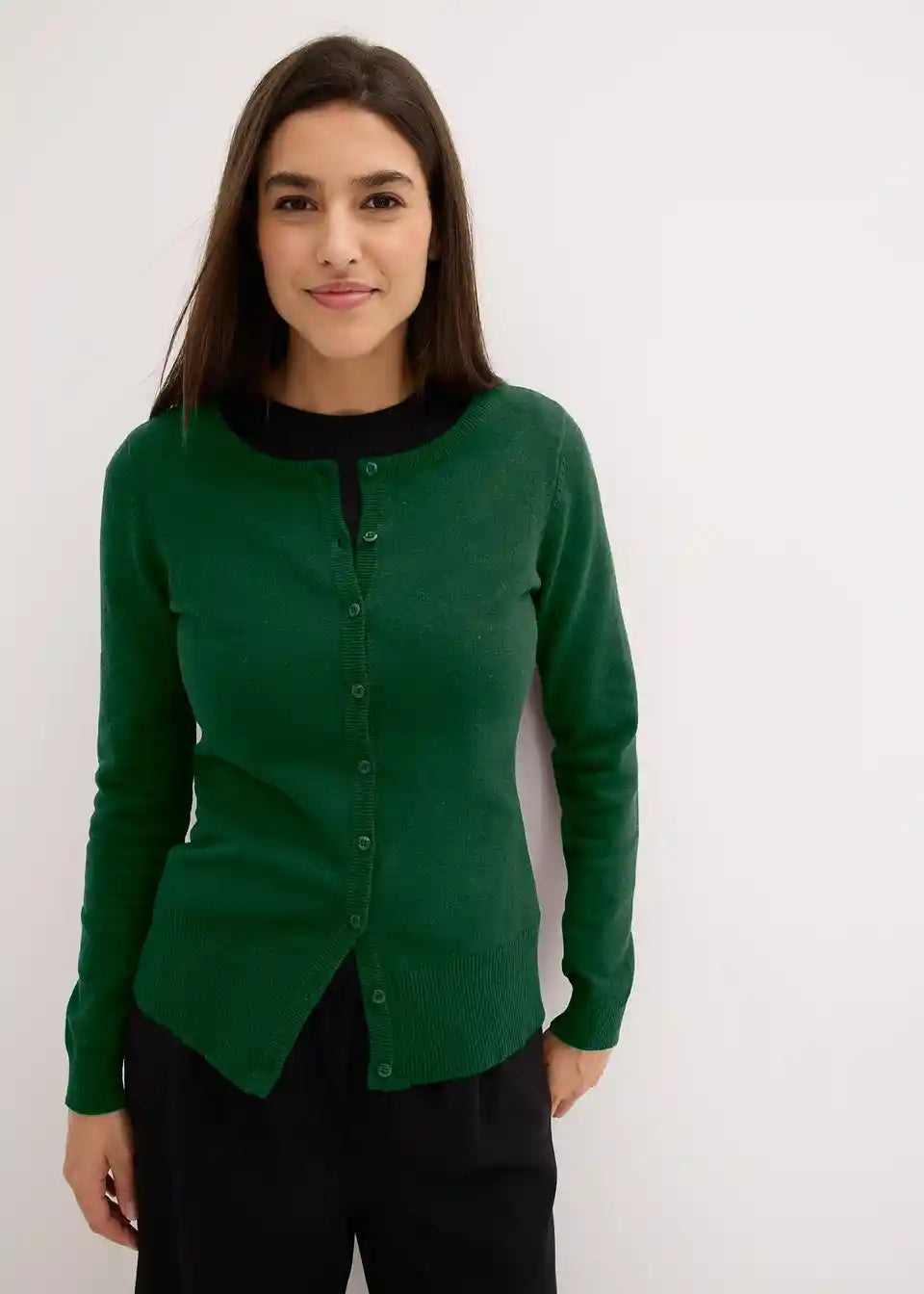 Pulover znamke b.p.c Casual iz finega pletenega materiala s knofastim zapenjanjem, dolžina od cca. 64 cm (vel. 36/38) do cca. 70 cm (vel. 48/50), primeren za strojno pranje