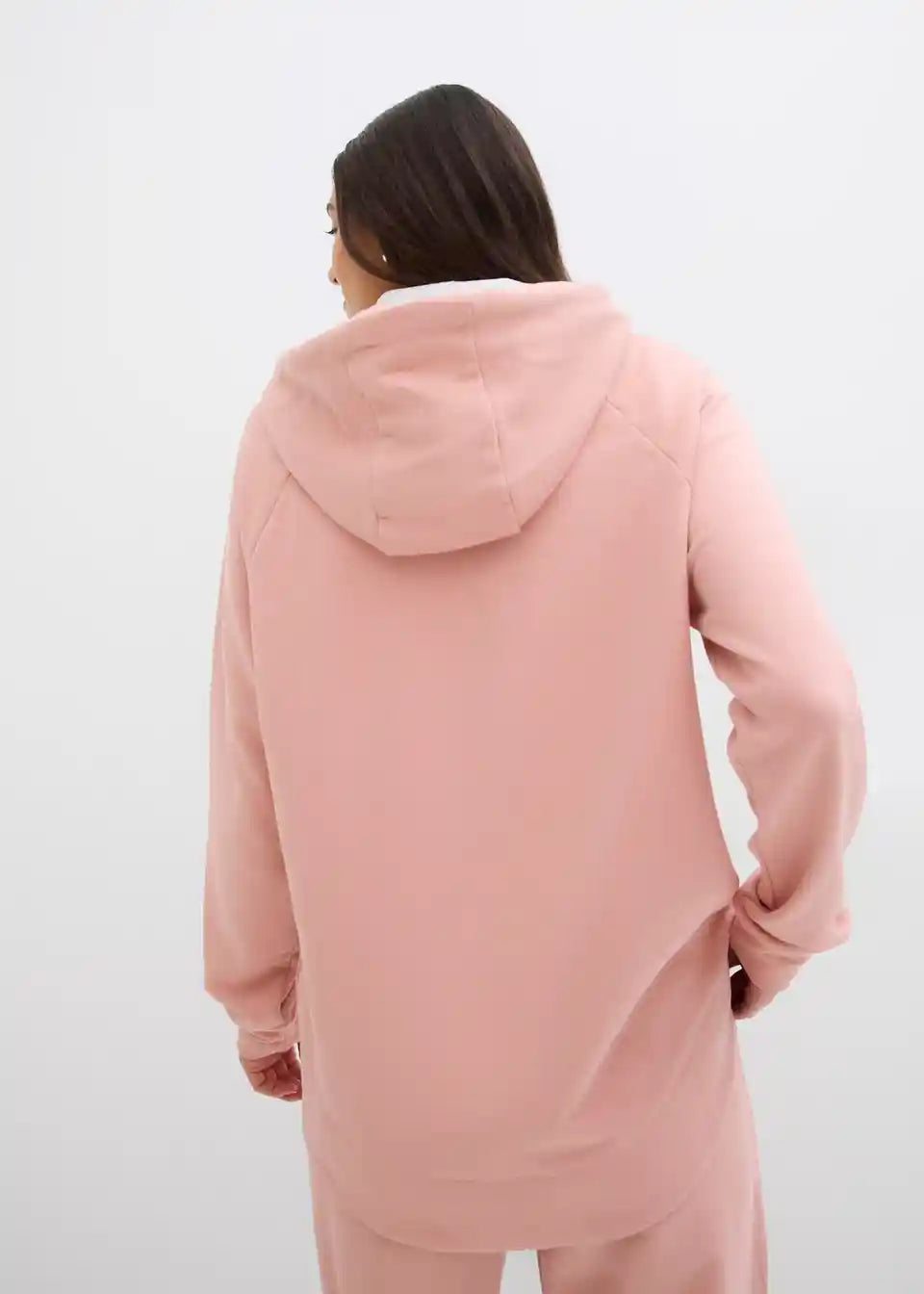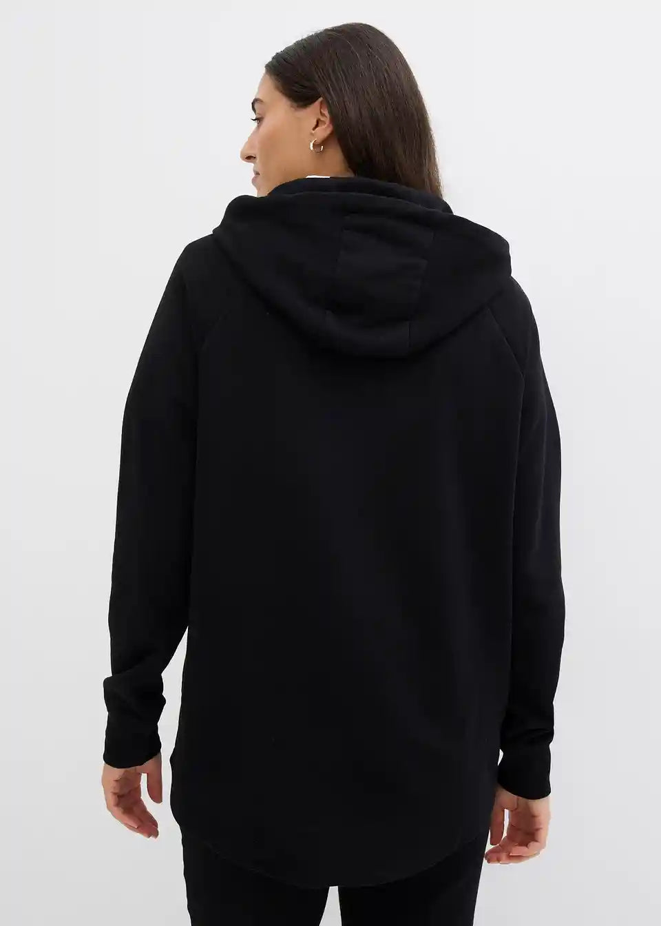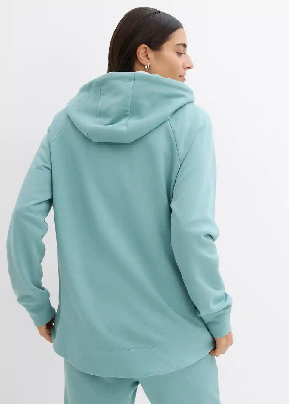 Udoben pulover s kapuco in daljšim robom zadaj. Dolžina pri št. 40/42 približno 76 cm, primeren za strojno pranje.