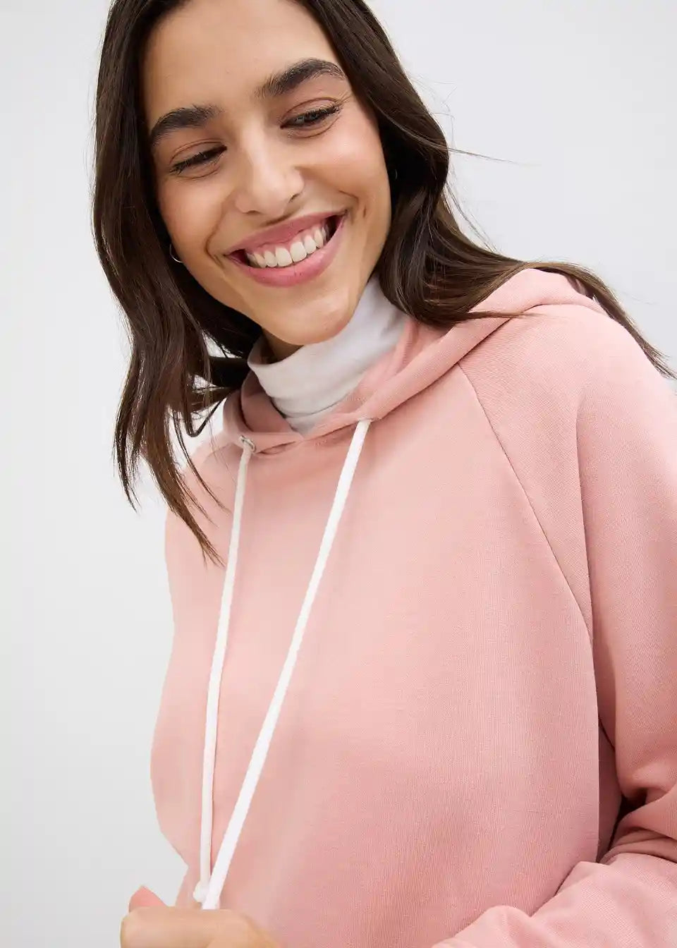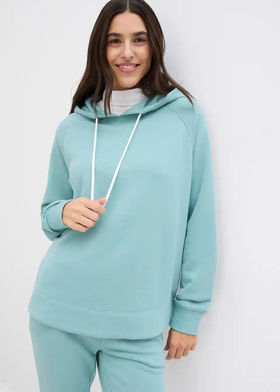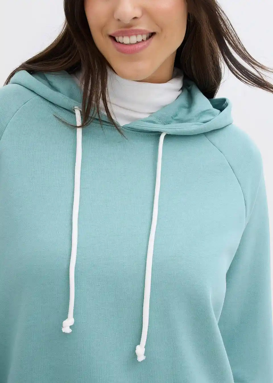 Udoben pulover s kapuco in daljšim robom zadaj. Dolžina pri št. 40/42 približno 76 cm, primeren za strojno pranje.