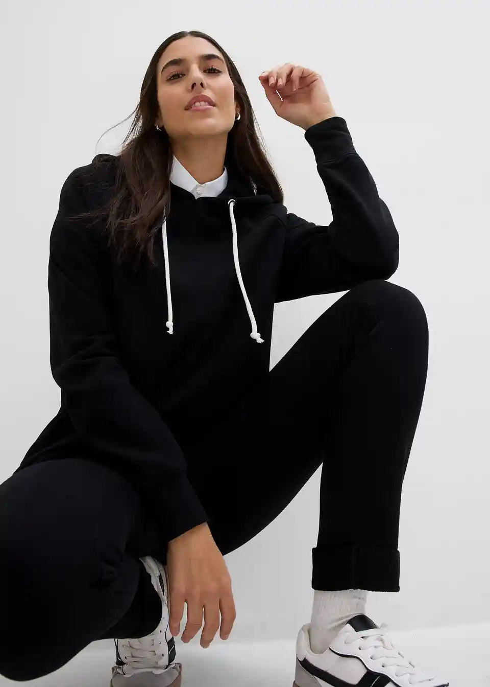 Majica iz trikoja s kapuco in dolgimi rokavi