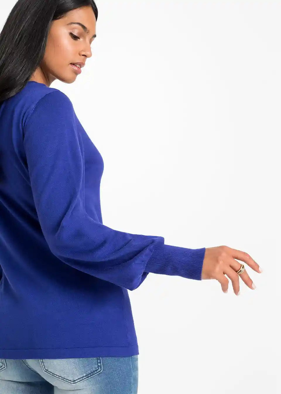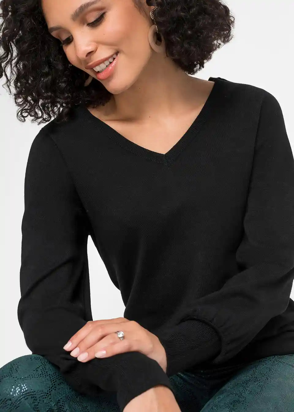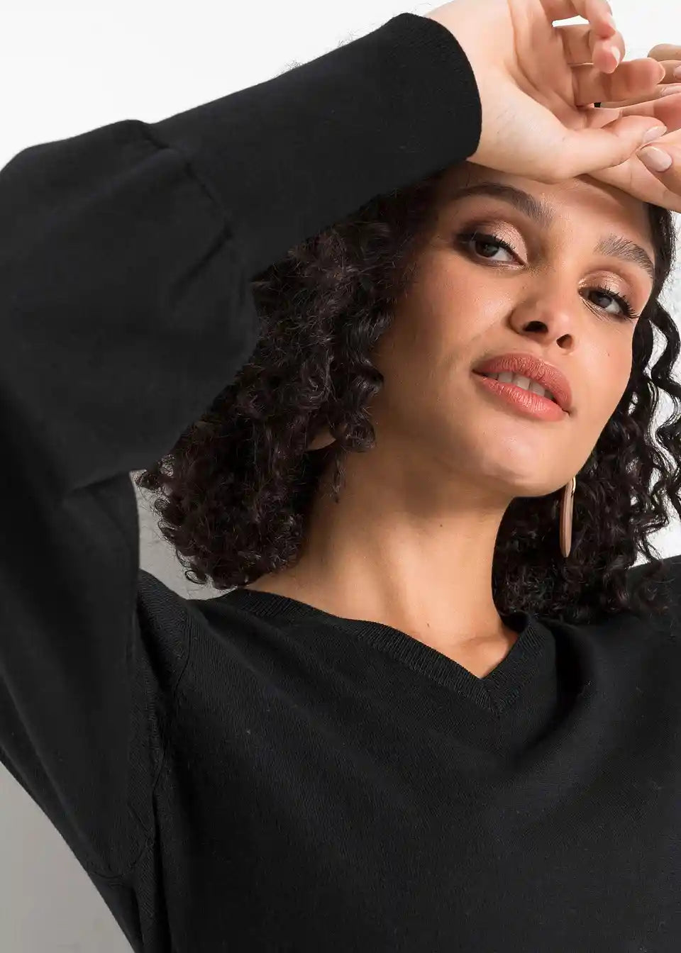 Ne glede na to, ali je eleganten ali sproščen – ta privlačen pulover blagovne znamke BODYFLIRT se da različno kombinirati in je čudovit privlačen kos.Paša za oči se kaže z širokimi balonastimi rokavi, ki se na zapestju zožijo in zaključijo z širokim robom. Globok V-izrez daje kolke prekrivajočemu puloverju z balonastimi rokavi privlačen videz.