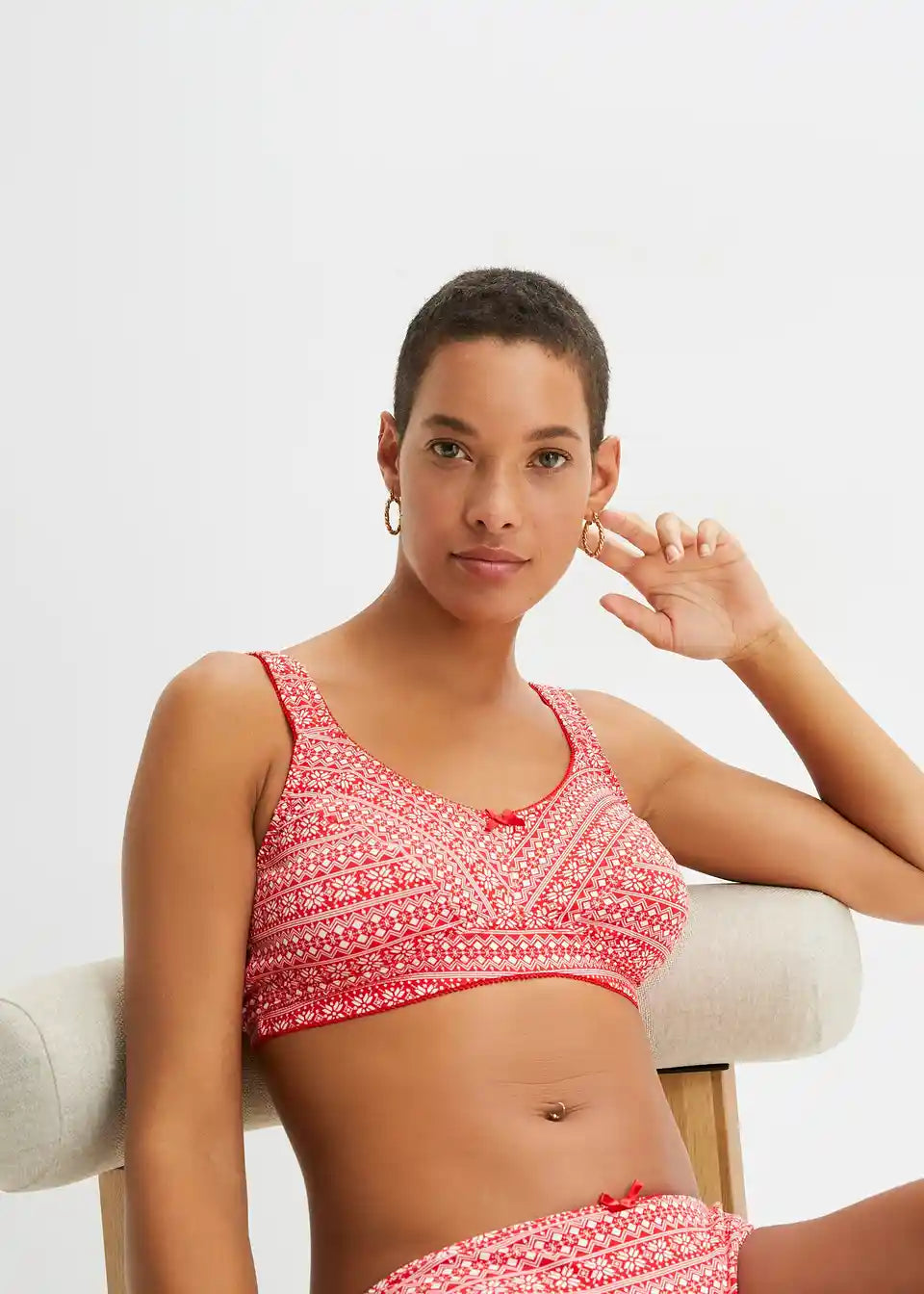 Ta nedrček je neobložen in ima norveški vzorec. Široke in oblazinjene naramnice ter organski bombaž zagotavljajo udobno nošenje.