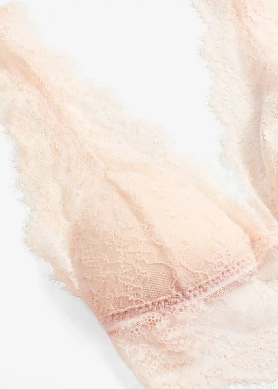 Bralette nedrček iz prefinjene čipke z okrašenimi naramnicami.