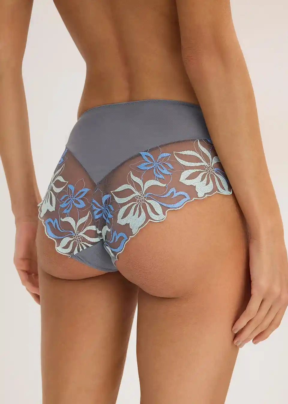 granitno siva/srednje modra, cvetlični vzorec
