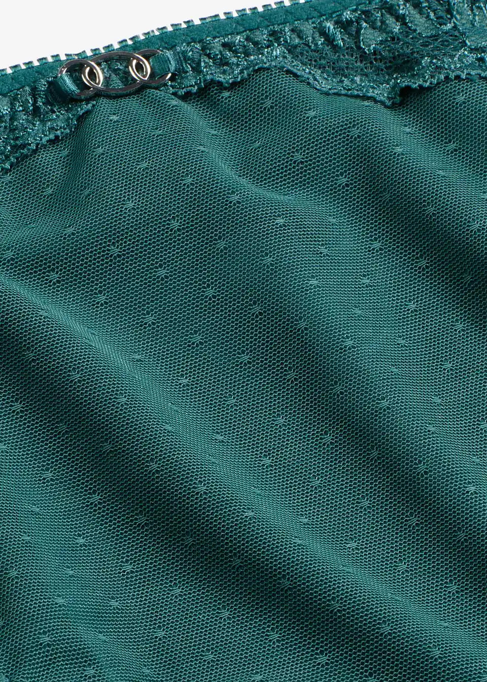 Material:zgornji material in podloga: 80% poliamid (recikliran), 20% elastan, čipka: 88% poliamid, 12% elastan, mreža: 83% poliamid, 17% elastan