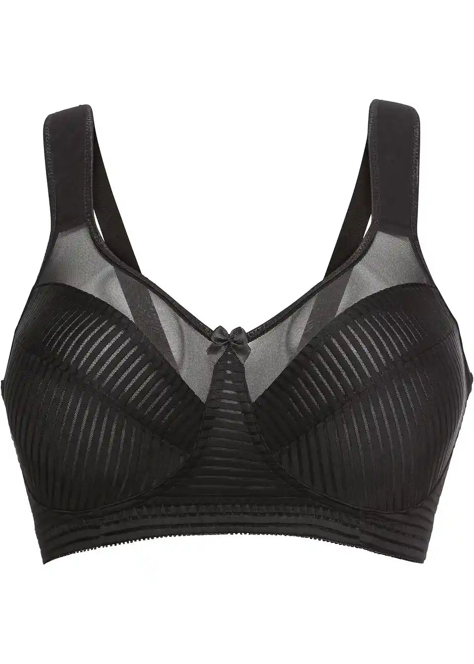 Ta elegantno oblikovan Minimizer nedrček je posebej prilagojen potrebam žensk z izrazitimi oblinami. Posebna visoka krojna oblika poskrbi, da prsi optično izgledajo manjše. Premišljena oblika ne vsebuje kosti. Široke naramnice so za dodatno udobje mehko podložene in ne zarezujejo – idealne za dolge dni! Okrasna pentlja na mostičku zaokroži obliko z ženstvenim pridihom.