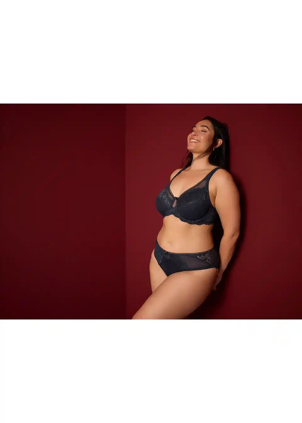 Material:zgornji material in podloga: 80% poliamid (recikliran), 20% elastan, čipka: 90% poliamid, 10% elastan, všitek: 90% poliamid, 10% elastan