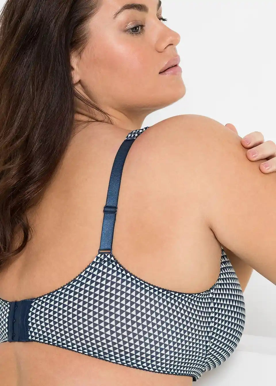 Kanjček čipke in sodoben potisk dodata T-Shirt nedrčku s posebno Minimizer krojno obliko nekaj dodatnega. Brezšivne košarice na opornikih nežno oblikujejo dekolte, medtem ko oblazinjene naramnice zagotavljajo vrhunsko udobje. Je čudovito mehak in se komaj opazi tako pod ohlapnimi kot pod oprijetimi zgornjimi oblačili. Premišljeno do najmanjših podrobnosti: To je pri tem oblikovalnem nedrčku vidno z mašno z dekorativnim kamnom na sredini in okrašenim lokom.