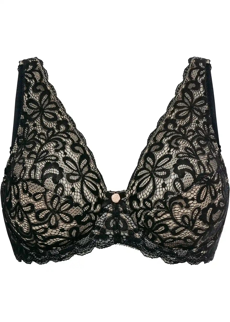 Prestižen nedrček z oporo spretno kombinira klasično-eleganten izgled. Spredaj je obogaten z dvojnim čipkastim slojem s cvetličnim motivom. Ta cvetlični dizajn se zaključuje ob spodnjem robu z valovitim obročkom. Zaradi elastične kakovosti je nedrček izjemno mehak. Udobna dodana vrednost: Oblazinjene naramnice in trostopenjsko zapenjanje so pri večjih košaricah še posebej široki. Zanimiv poudarek je pentlja z okrasno vrtnico pri mostičku. Zaradi vseh teh čudovitih in udobnih detajlov je takšno spodnje perilo prava izbira.