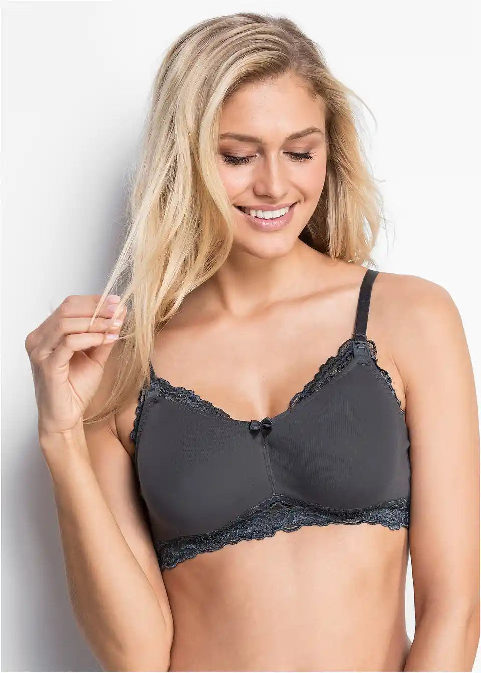 Ta nedrček za dojenje znamke Nice Size združuje udobje z lepim dizajnom in je na voljo v ugodnem pakiranju dveh kosov. Mehka kakovost omogoča prijetno prileganje telesu in dober občutek med nošenjem. Košarice so dodatno podložene z bombažem za dodatno udobje. Nastavljive naramnice in zapiranje s kaveljčki in zankami na zadnji strani sta pri večjih številkah širša. Zahvaljujoč praktičnemu zapiralcu na sponko lahko nedrček za dojenje odprete z eno roko. Model prepriča z vizualno privlačno čipkasto dekoracijo. Med nosečnostjo se telo spreminja. Zato vam priporočamo, da se ponovno izmerite, da določite svojo pravilno velikost.