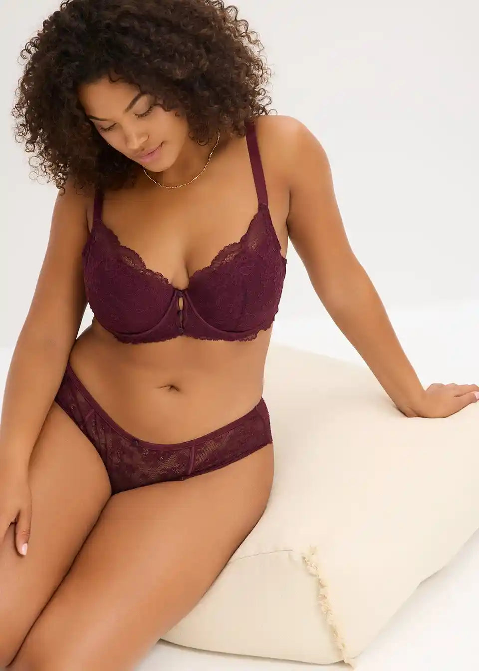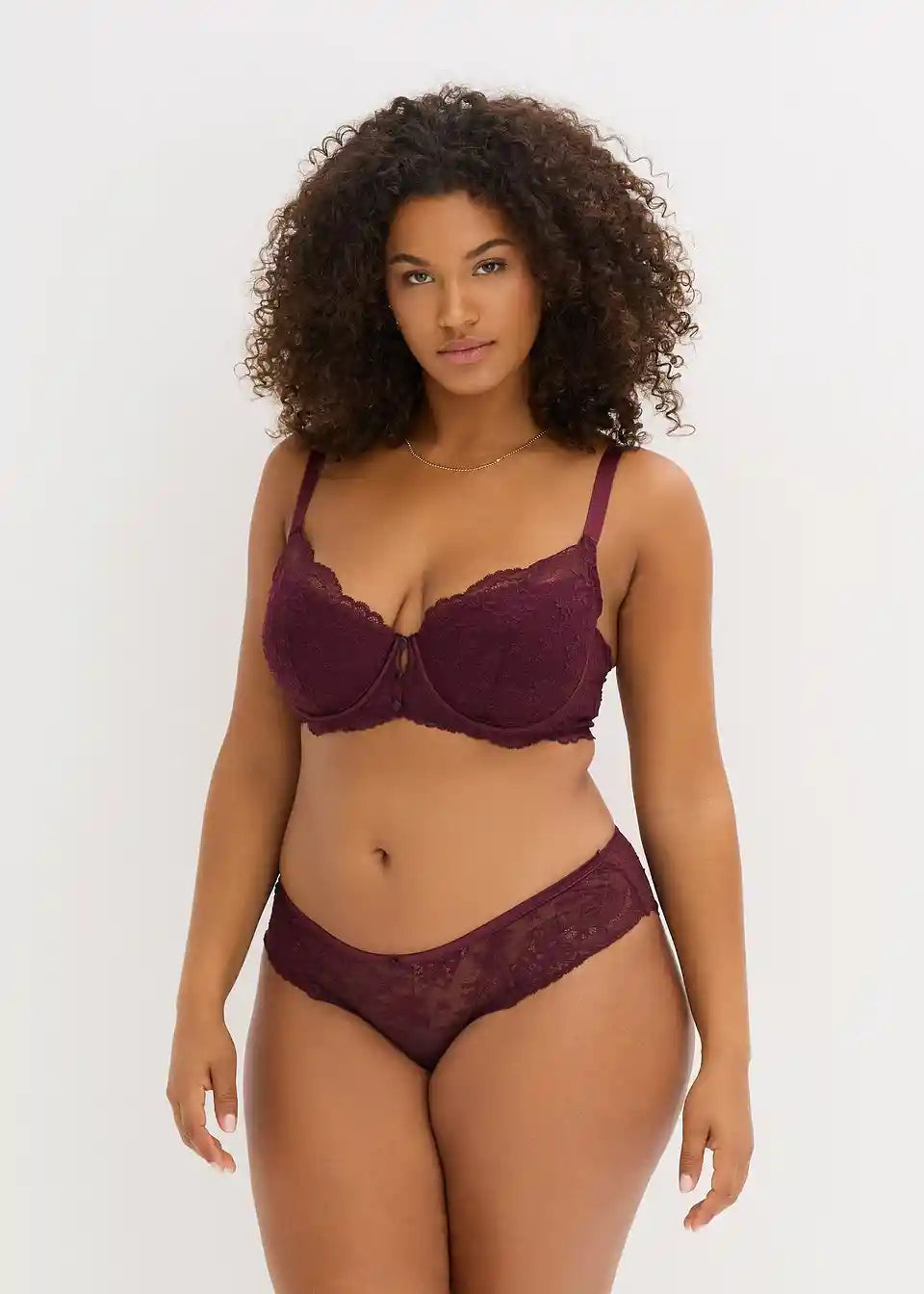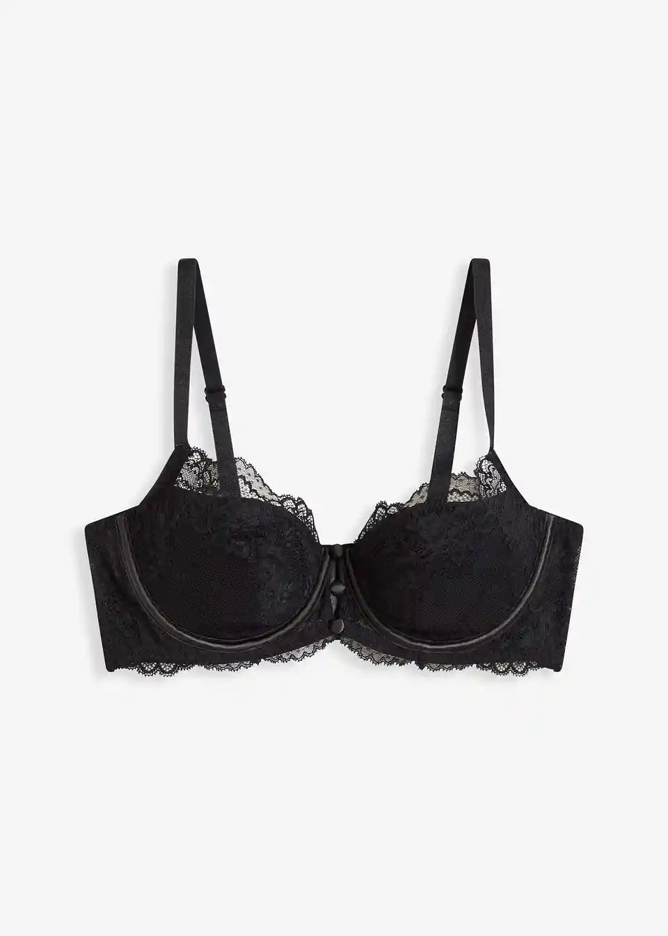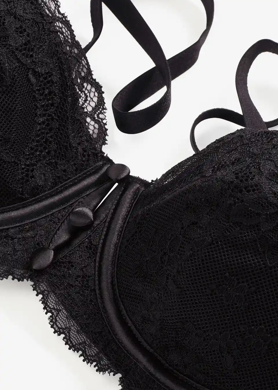 Penasto oblikovan nedrček iz fine čipke z ljubkim detajlom gumba.