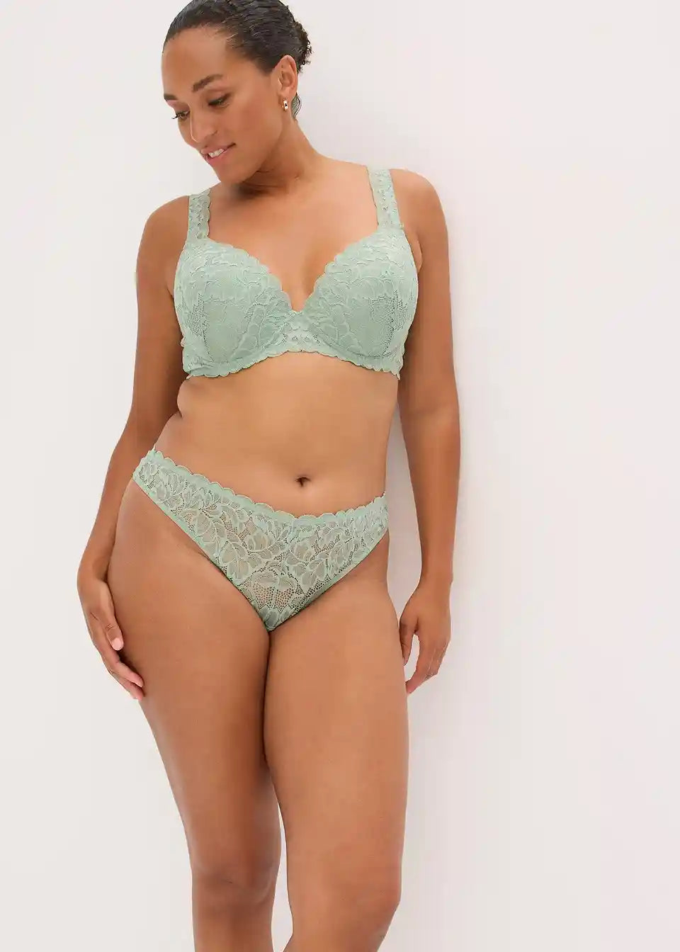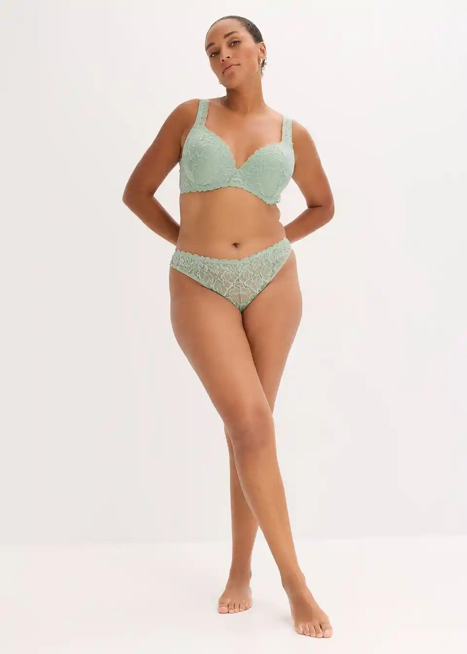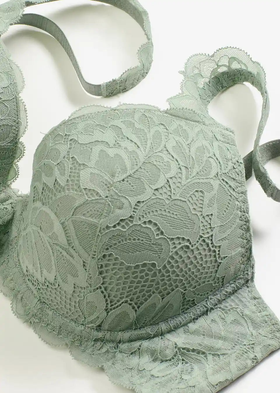 Podložen nedrček s cvetlično čipko in ljubkim detajlom na naramnicah.