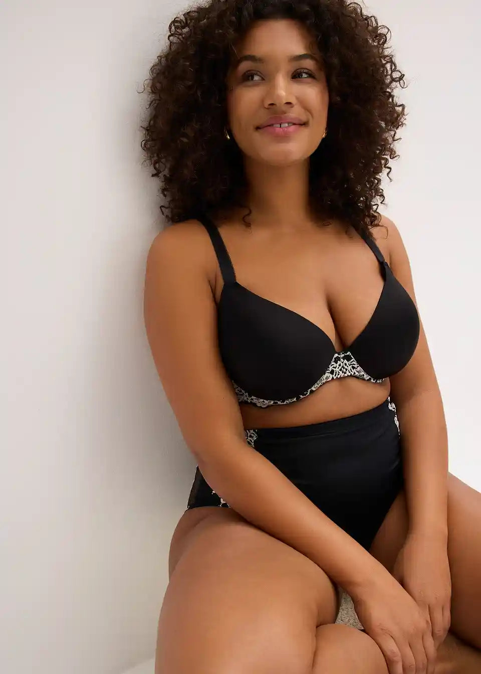 Penasto oblikovan nedrček z dvobarvno čipko in recikliranim poliamidom.