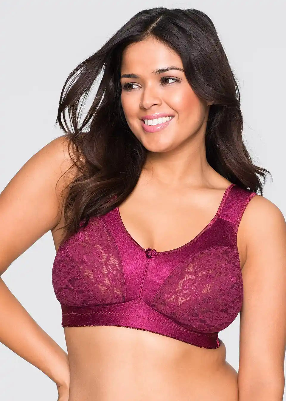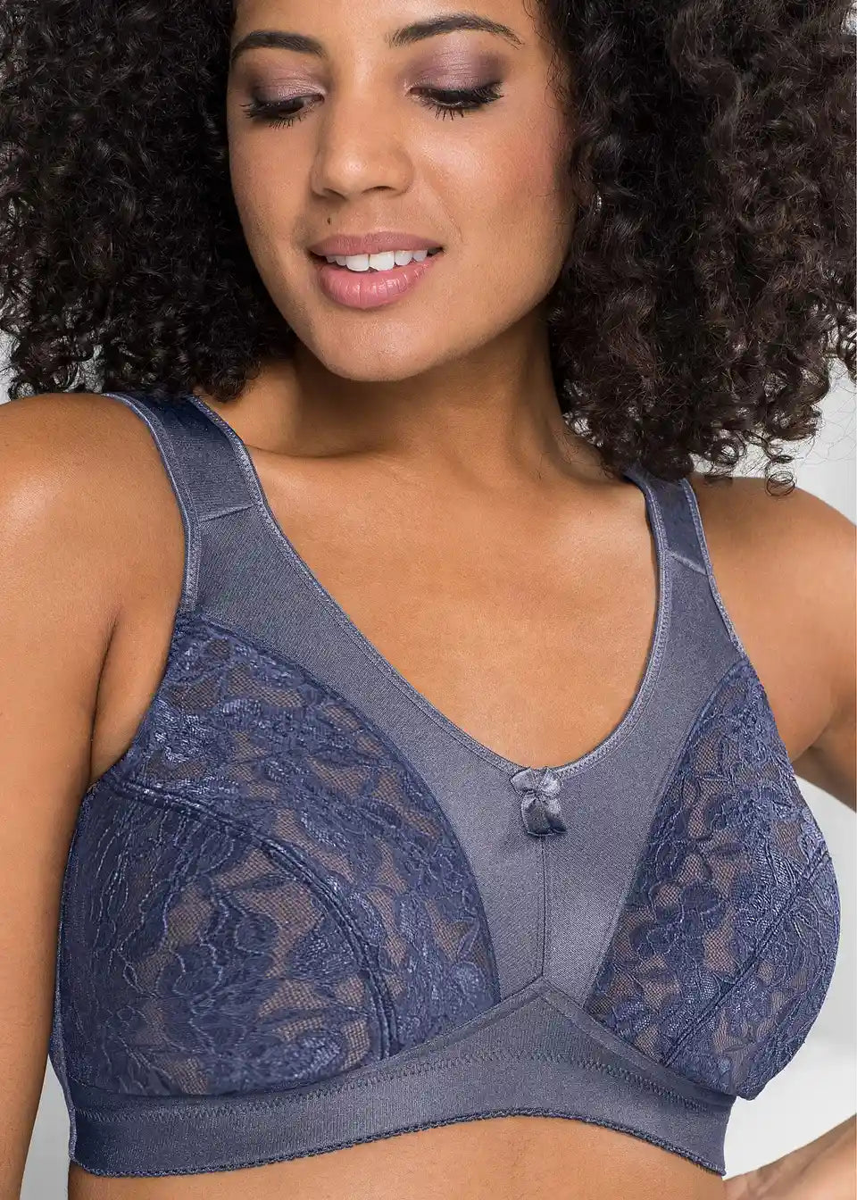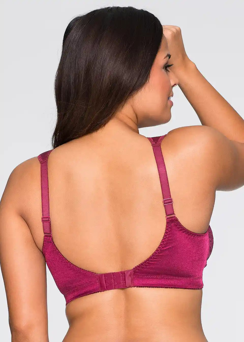 Razbremenilni nedrček znamke bpc selection ponuja optimalno oporo in podporo brez kosti. Podložene široke naramnice razbremenijo ramena in nudijo zanesljivo oporo tudi za večje prsi, hkrati pa oblikujejo lep videz. Košarice so okrašene z rahlo prosojno, ojačano čipko. Nedrček se zapenja zadaj s kaveljčki in očesci. Ponuja oblikovno stabilno udobje, občutek varnosti ter lep videz z nežnim sijajem.