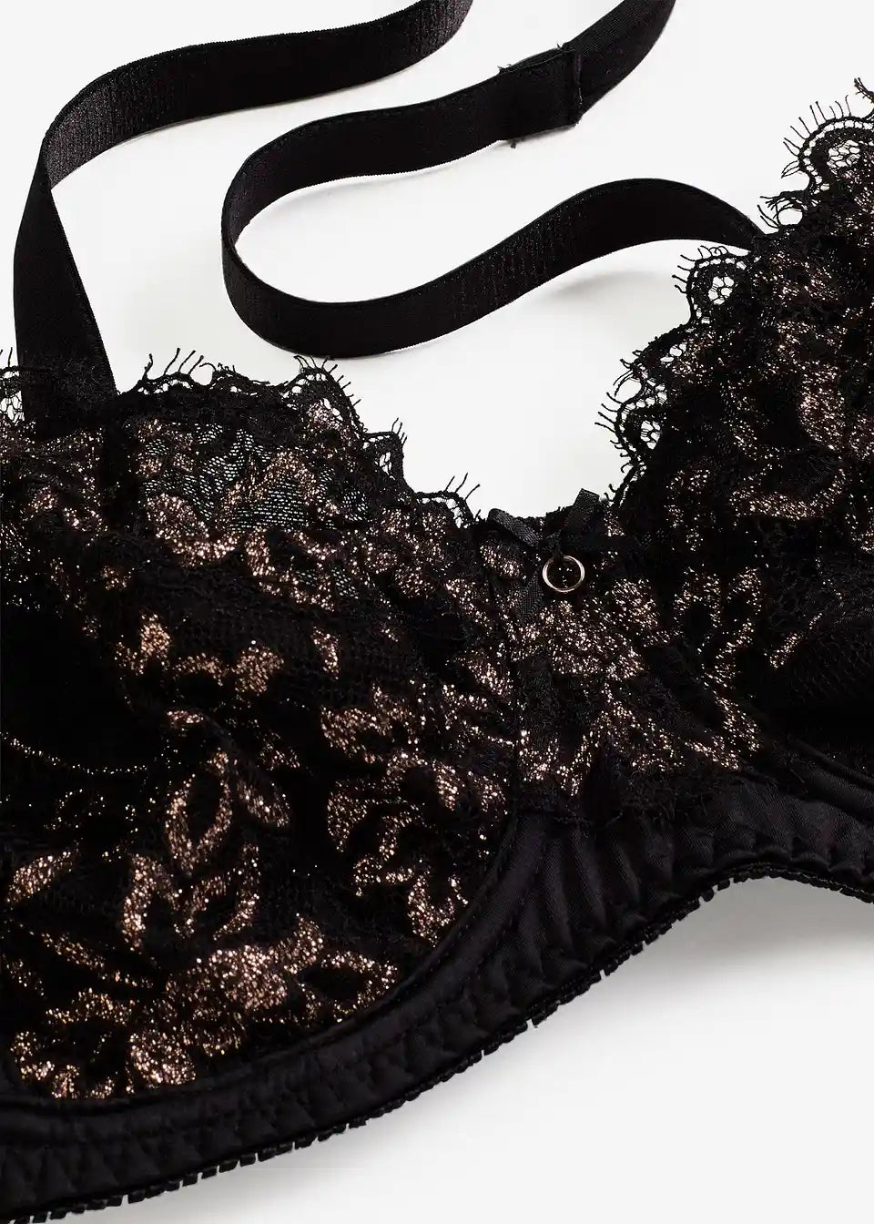 Material:zgornji material: 88% poliamid, 12% elastan, podloga: 100% bombaž, čipka: 48% poliamid, 32% poliamid (recikliran), 12% elastan, 8% kovinska vlakna