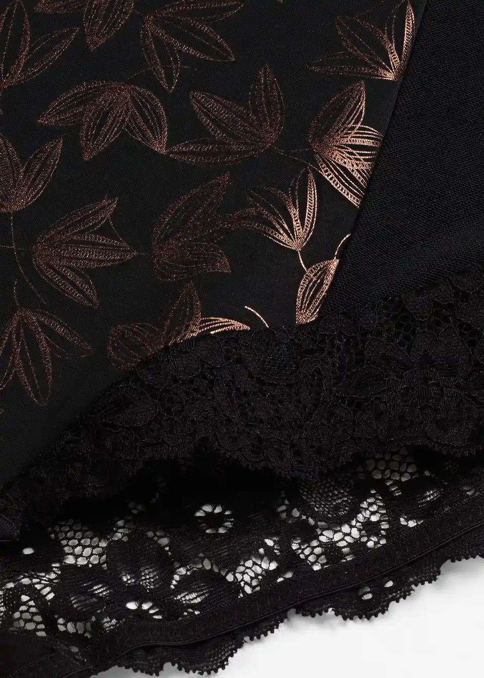 zgornji material: 80% poliamid, 20% elastan, čipka: 85% poliamid, 9% elastan, 6% poliester, mrežasta podloga: 86% poliamid, 14% elastan
