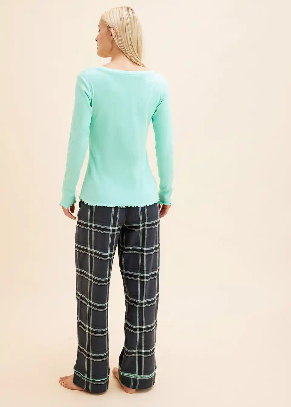 Pižama z rebrastim zgornjim delom in hlačami iz flanele