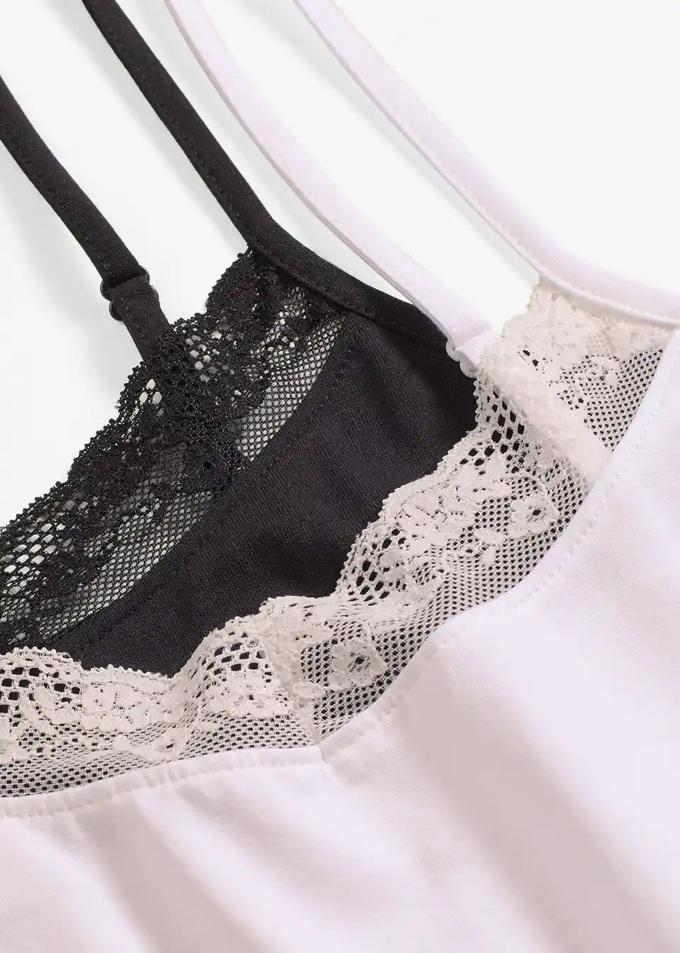 Spodnja majica iz ekološkega bombaža s čipko (2 kosa)